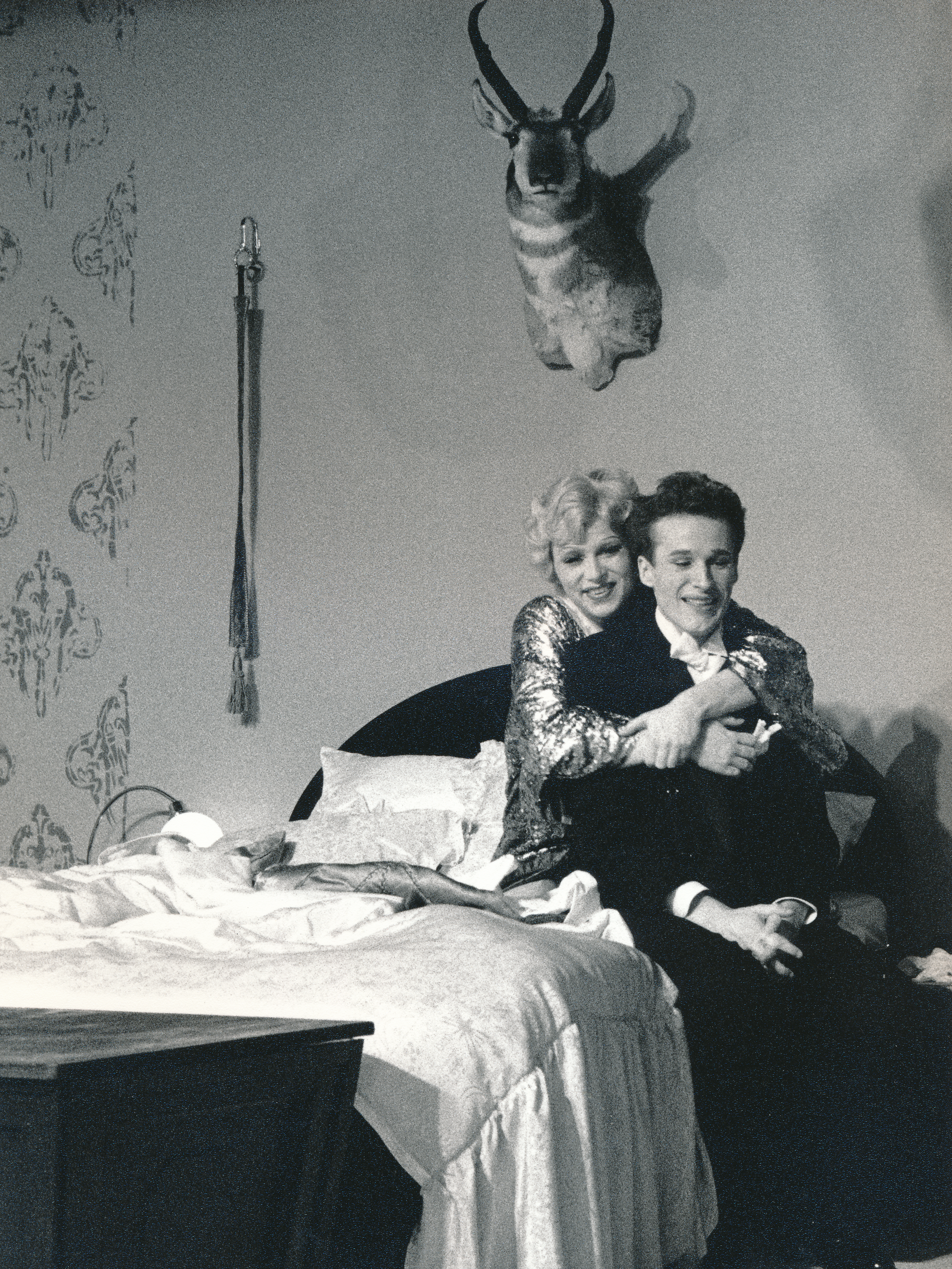 Fotografi fra Statens teaterhøgskoles studentproduksjon Piken i bilen med 3.klasse skuespillerlinjen(1989).