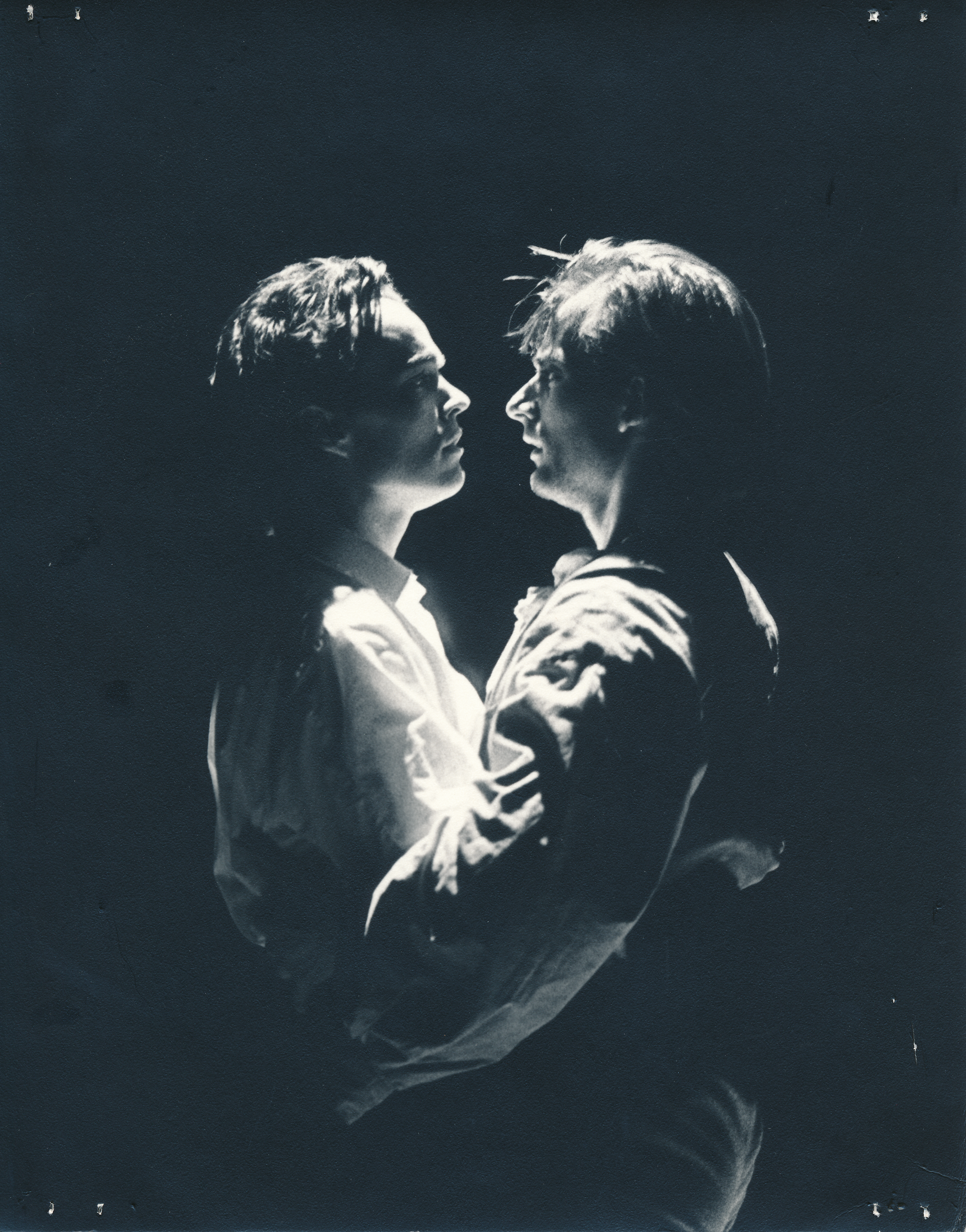 Fotografi fra Statens teaterhøgskoles produksjon Blodbryllaup med 3.klasse skuespillerlinjen (1986).