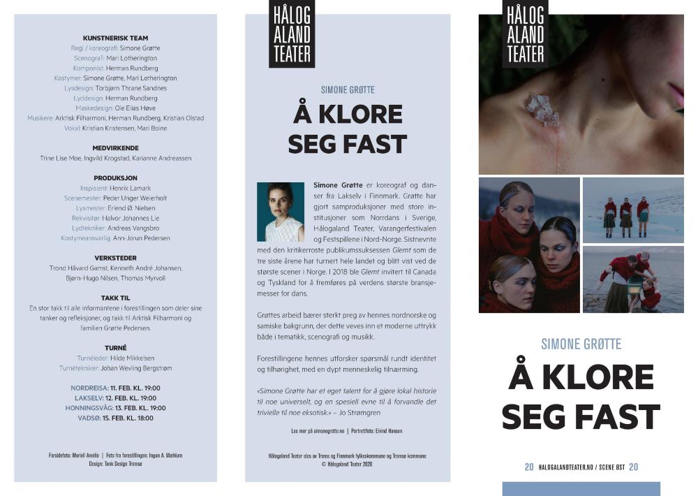 Program for Simone Grøtte Produksjoners produksjon Å klore seg fast (2020).