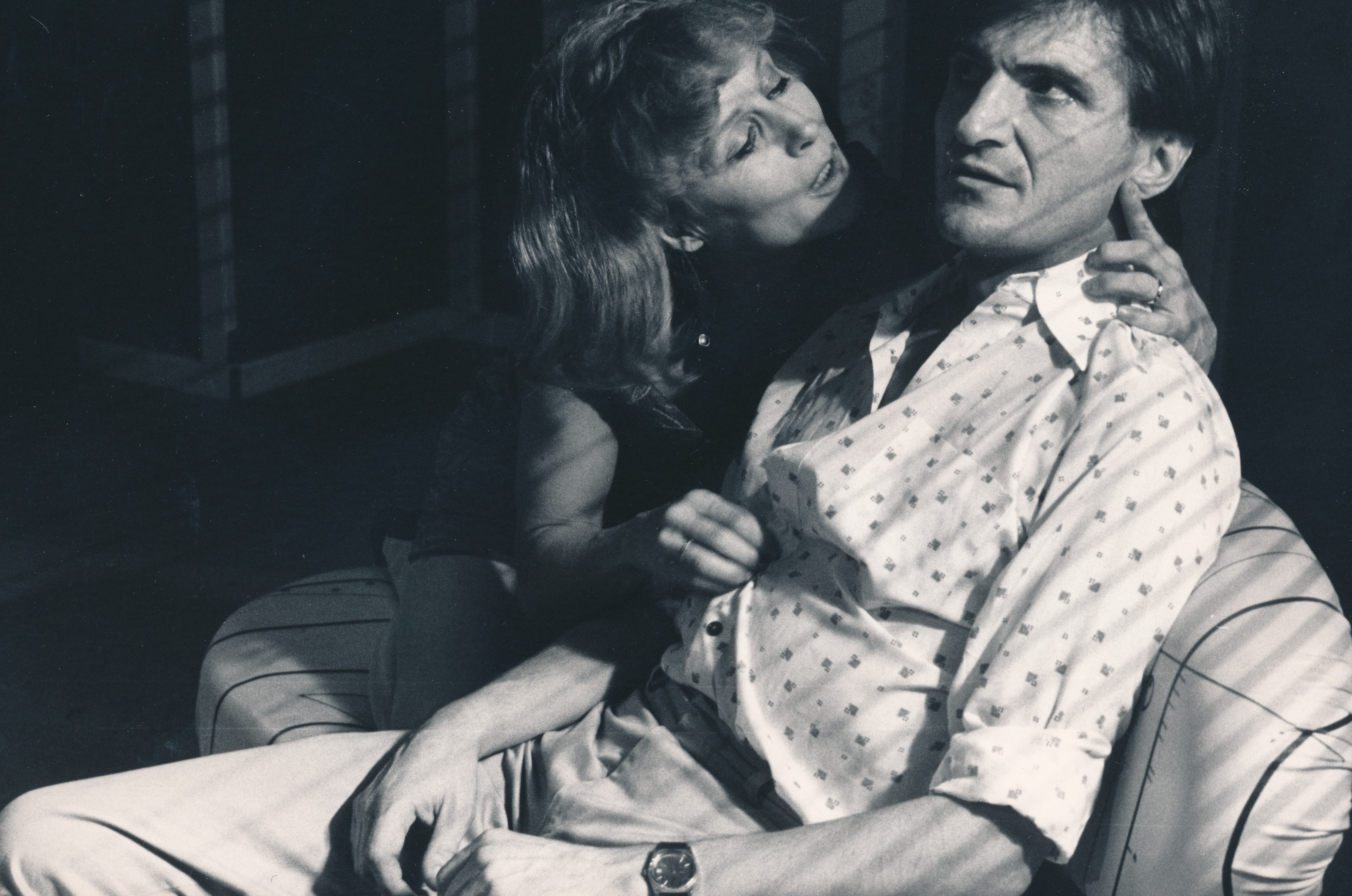 Fotografi fra Statens teaterhøgskoles studentvisning Elskeren (1987)