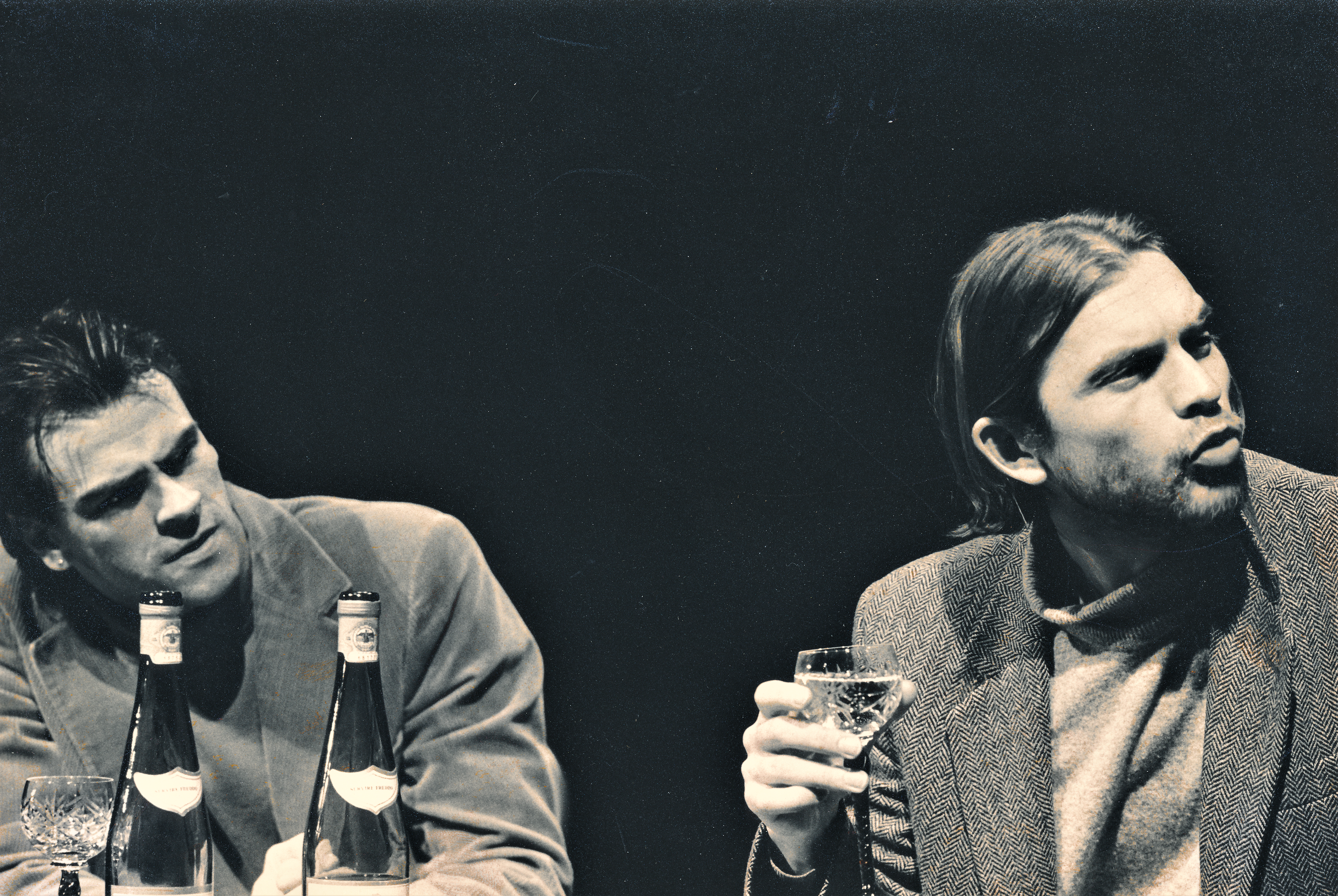 Fotografi fra Statens teaterhøgskoles studentproduksjon Bedrag med studenter fra 3.klasse skuespillerlinjen (1988).