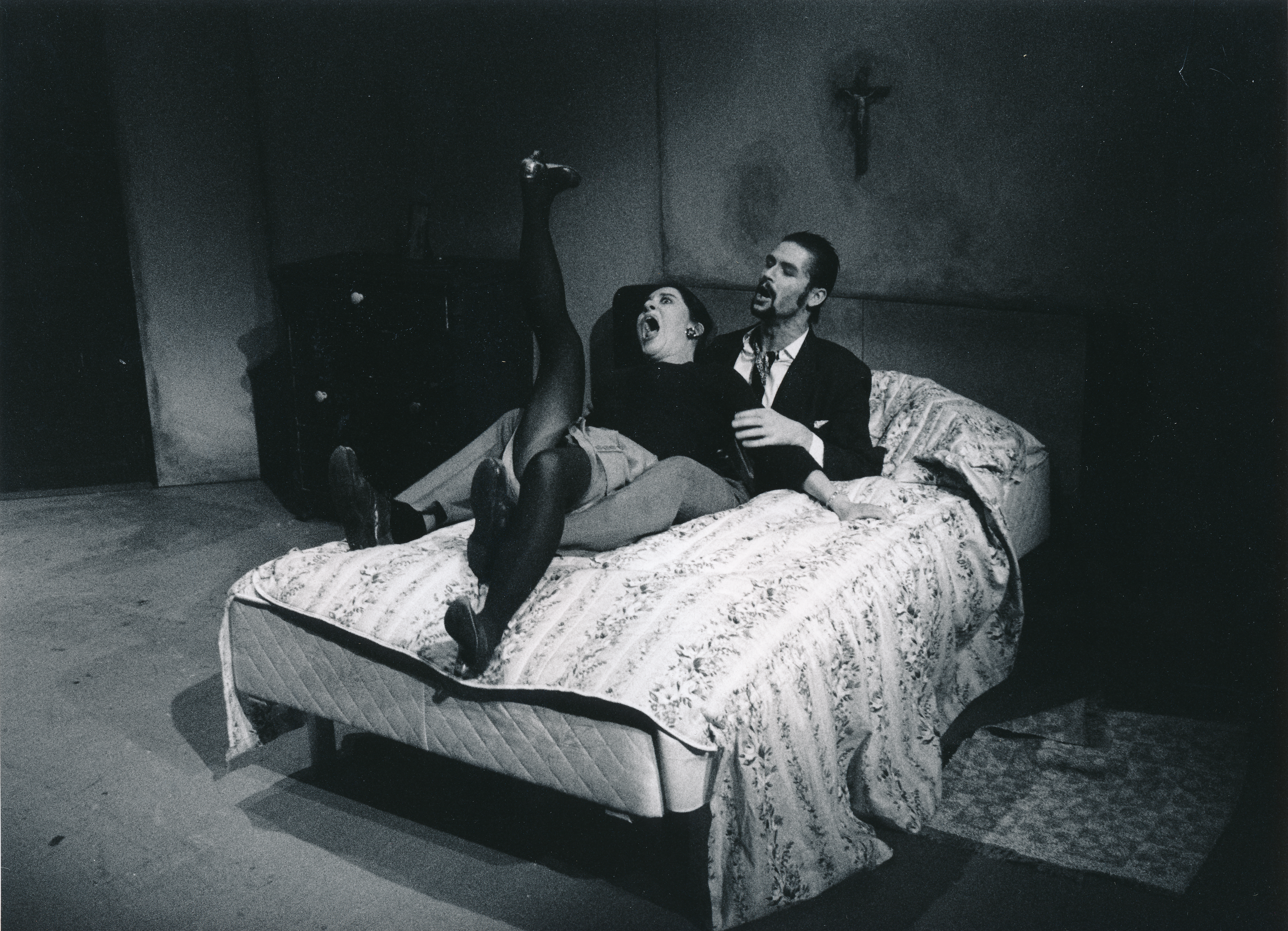 Fotografi fra Statens teaterhøgskoles studentproduksjon Vi betaler ikke, vi betaler ikke (1995).