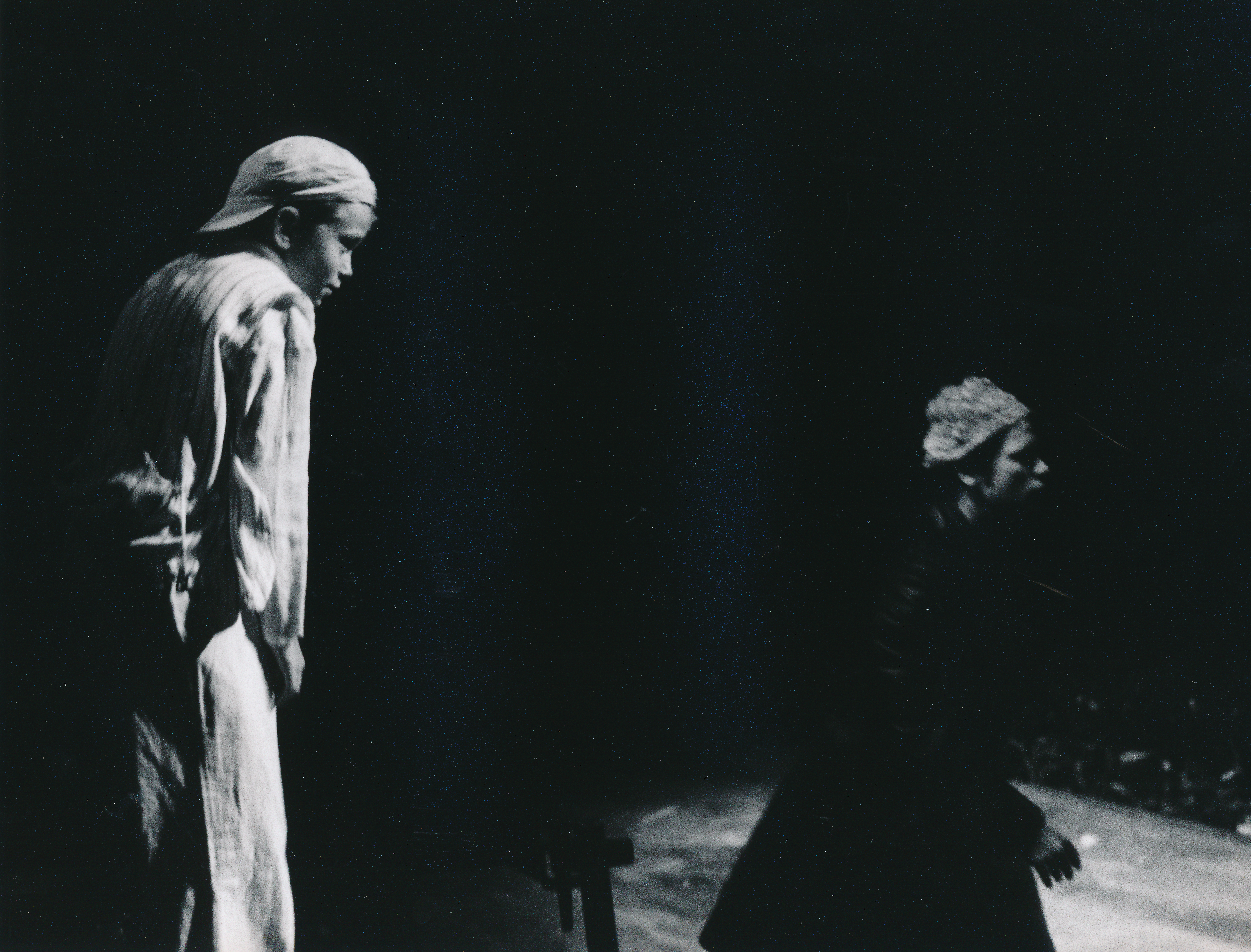 Fotografi fra Statens teaterhøgskoles studentproduksjon Mens vi venter på Godot (1995).