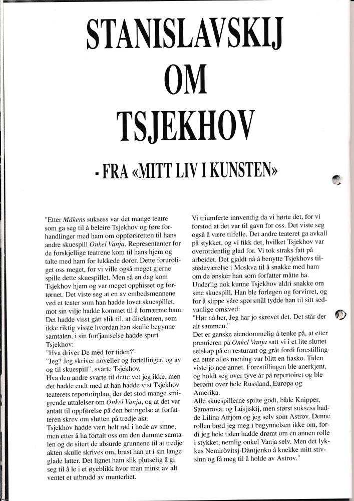 Program til Statens teaterhøgskoles avgangsproduksjon Onkel Vanja, side 3 (1994)
