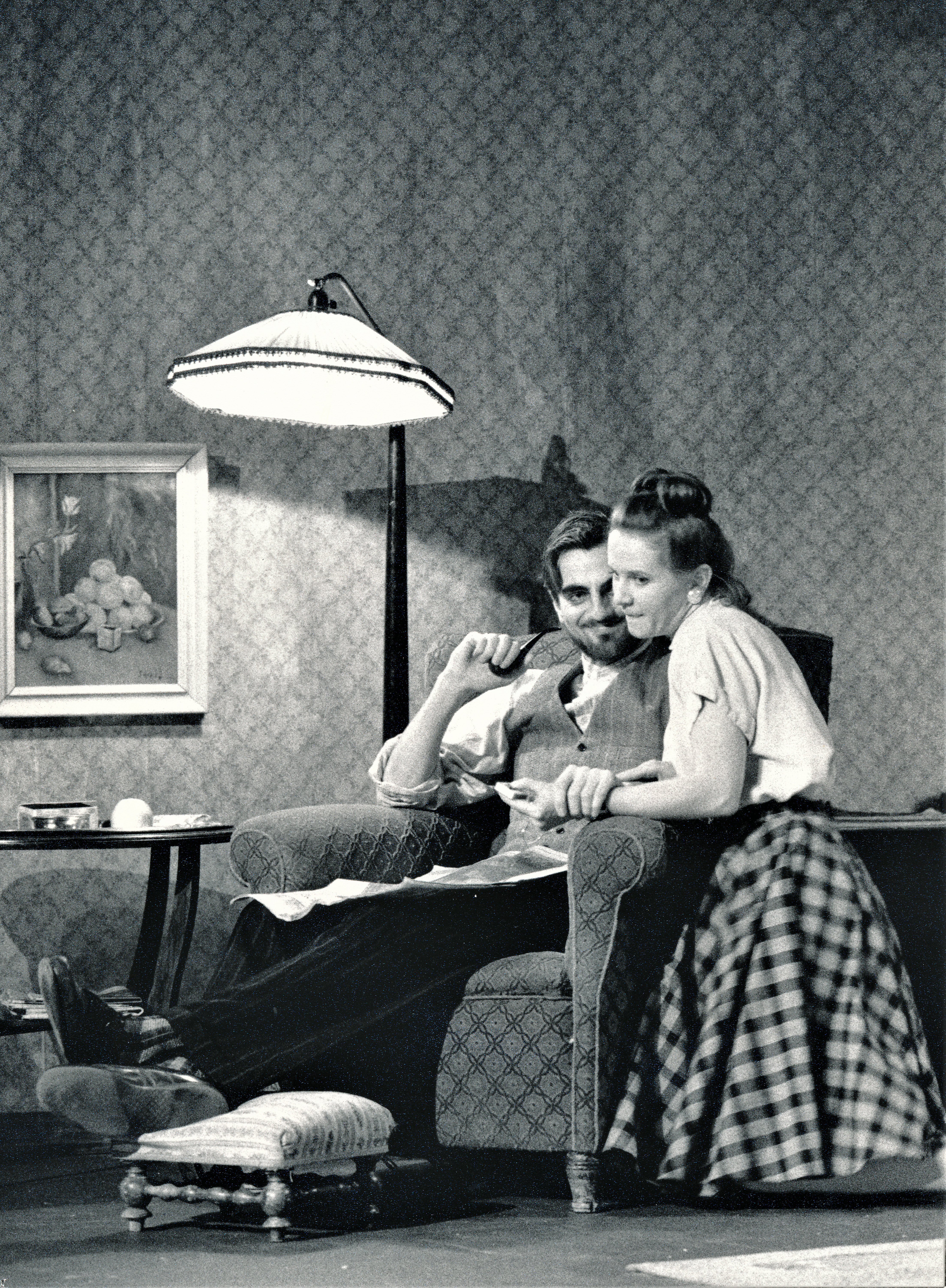 Fotografi fra Statens teaterhøgskoles studentproduksjon Sett fra en bro (1989).