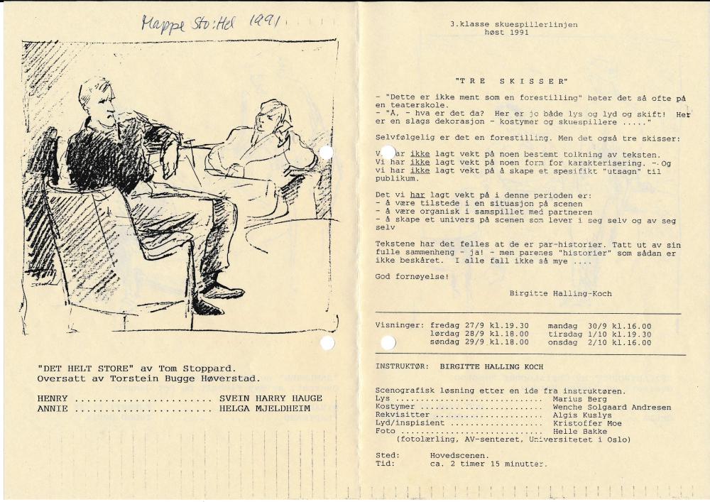 Program til Statens teaterhøgskoles produksjon Det helt store (1991)