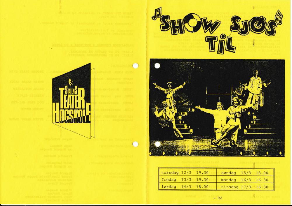 Program til Statens teaterhøgskoles studentproduksjon Show til sjøs (1992)