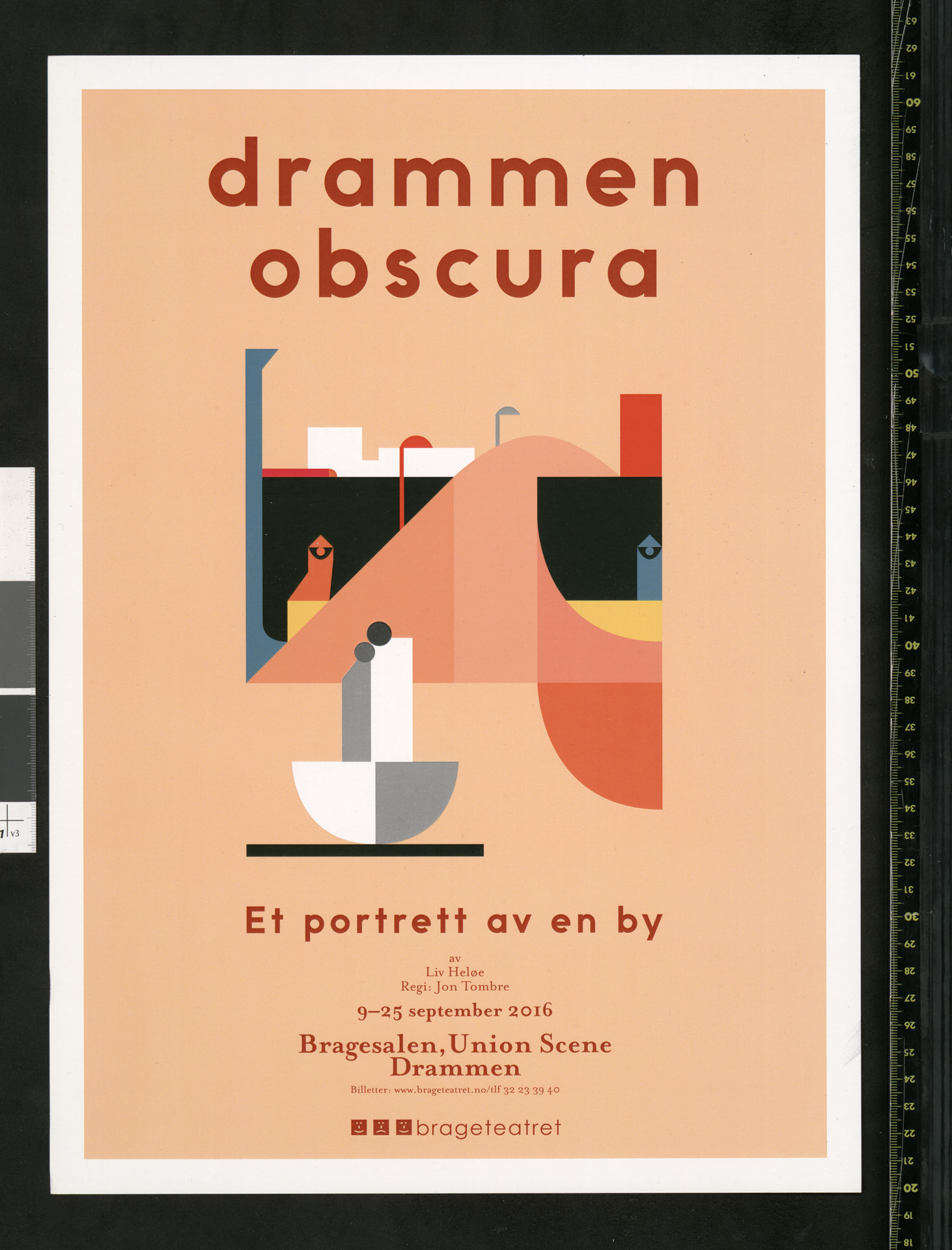 Plakat fra Brageteatrets produksjon Drammen Obscura(2016).