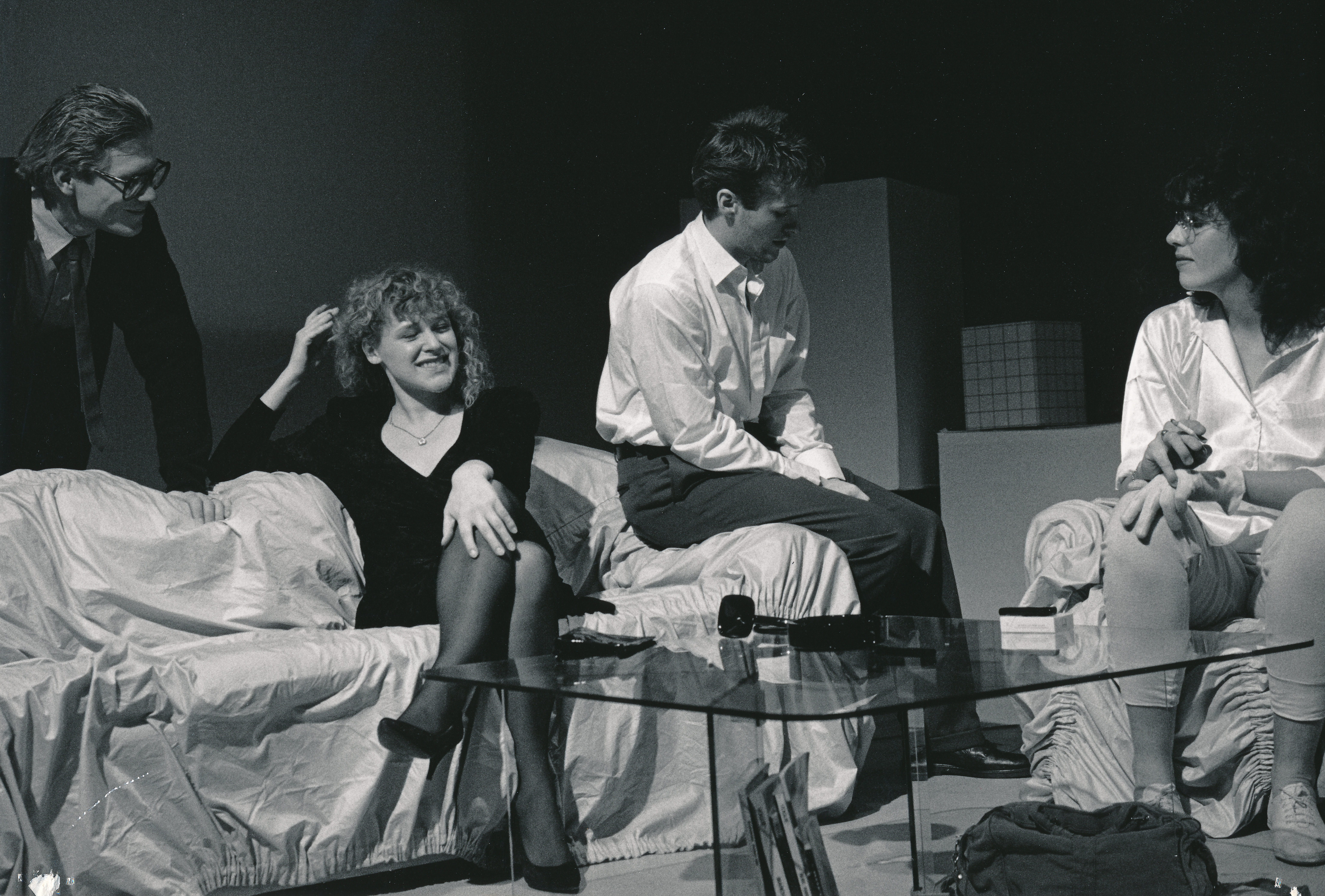 Fotografi fra Statens teaterhøgskoles studentproduksjon Demoner, del 2 med 3.klasse skuespillerlinjen (1988).