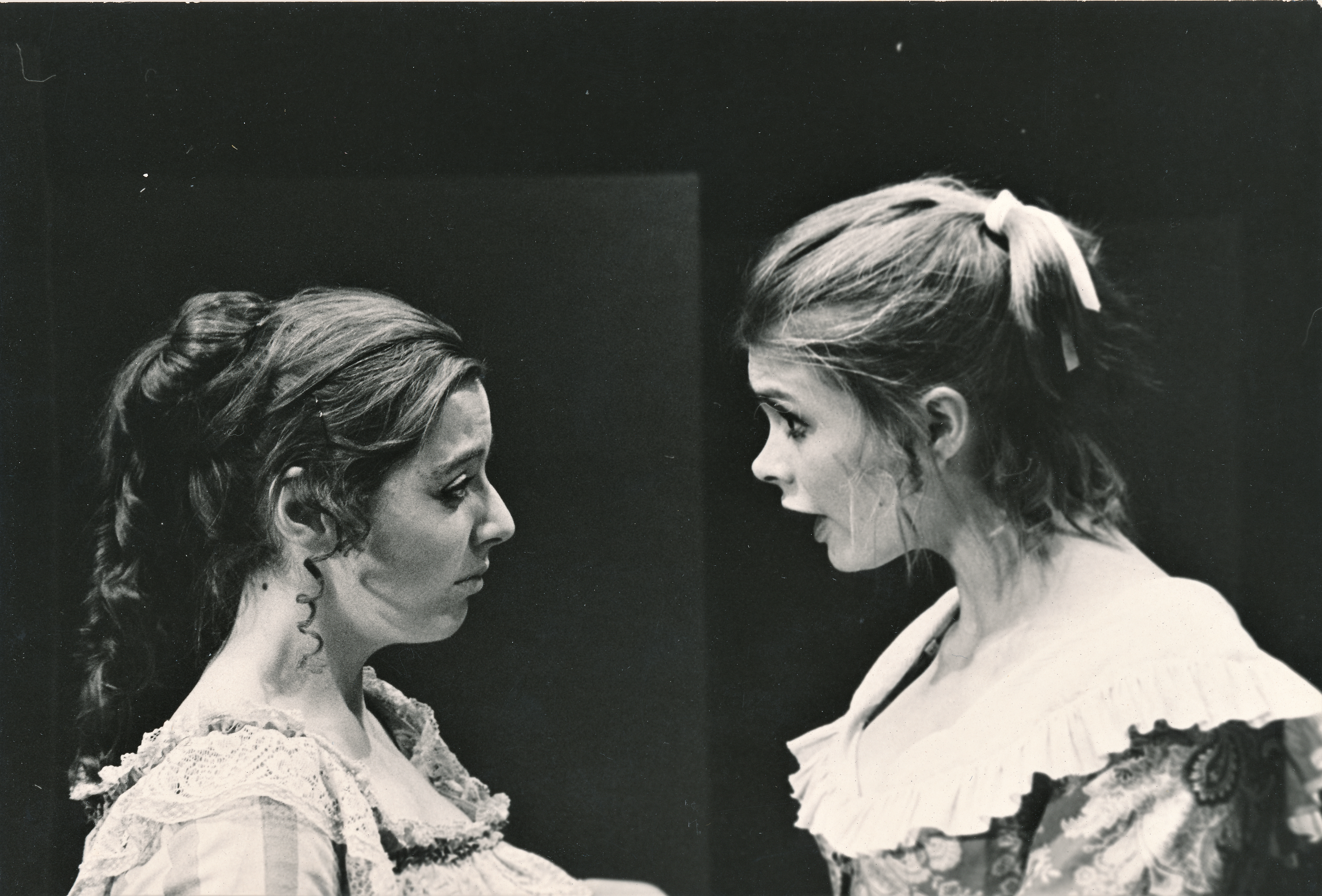 Fotografi fra Statens teaterskoles visning med 2.klasse skuespillerutdanningen scener fra Tartuffe (1975)
