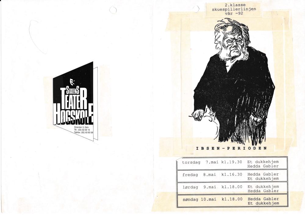 Programforside til Statens teaterhøgskoles studentproduksjon Hedda Gabler - utdrag med 2.klasse skuespillerlinjen (1992)