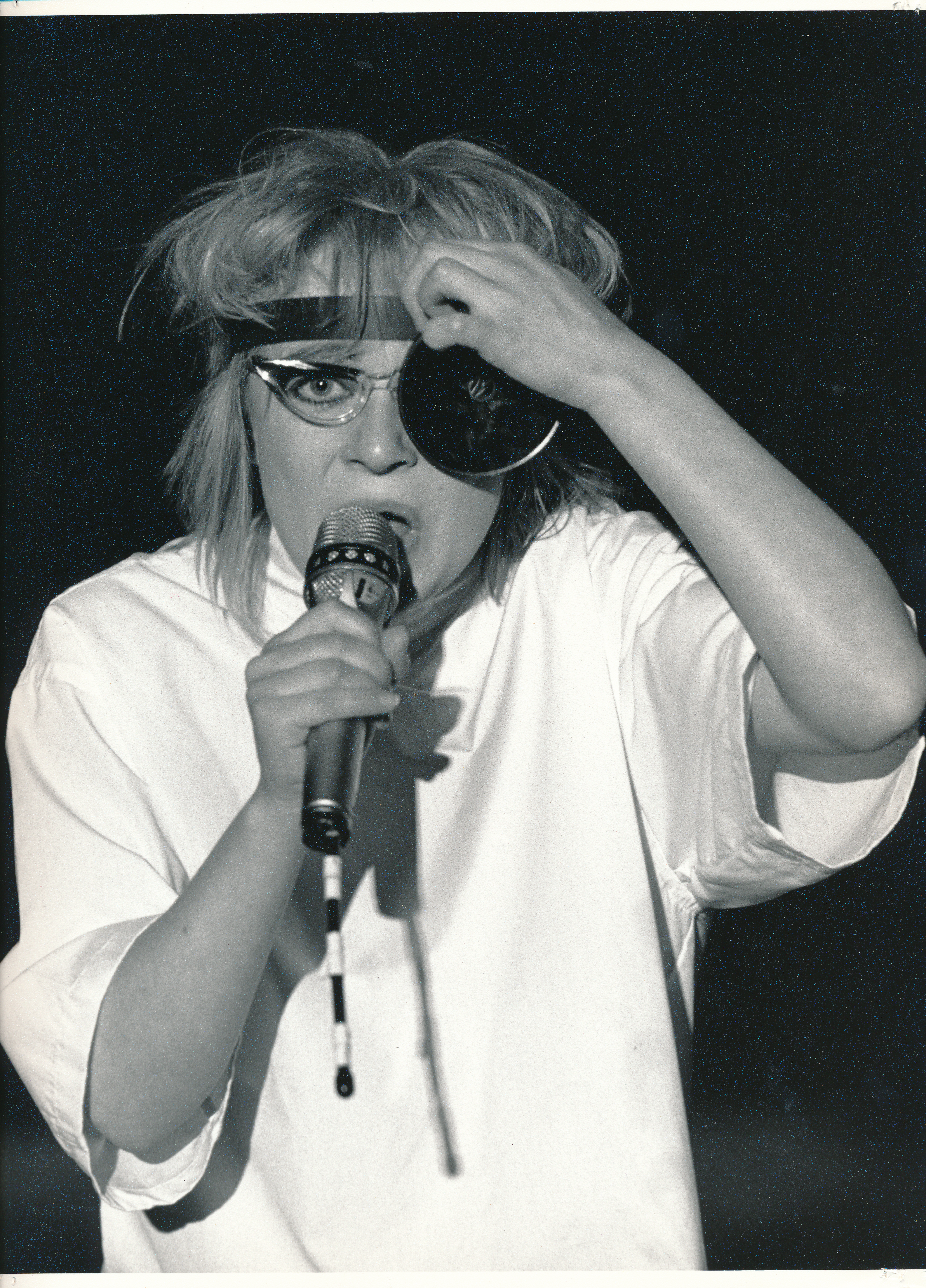Fotografi fra Statens teaterhøgskoles musikal- og sangprogram Hummer & Kanari med 3.klasse skuespillerlinjen (1989)
