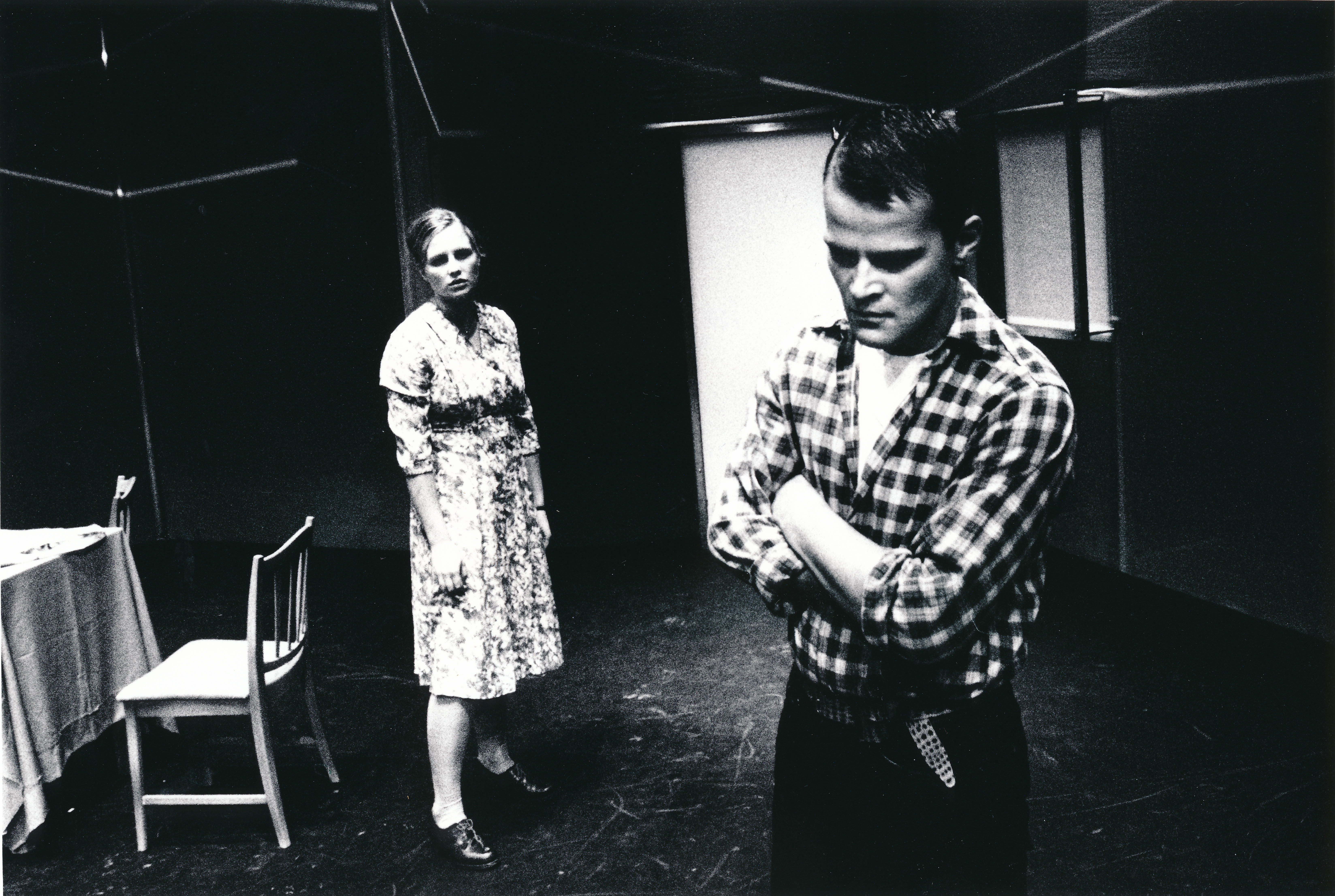 Fotografi fra Statens teaterhøgskoles visning Håpets dag (2004) med studenter i 3.klasse skuespillerlinjen.
