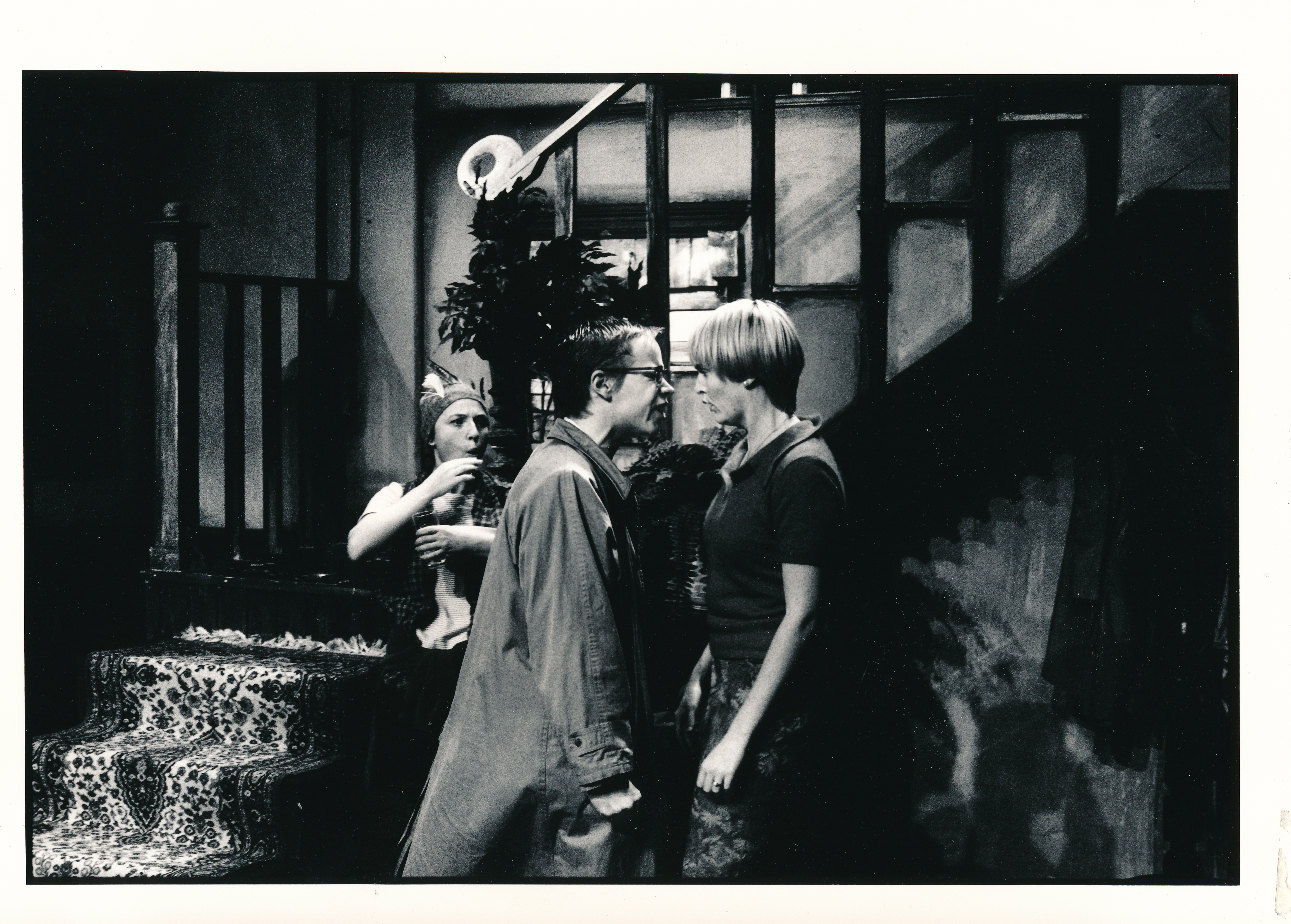 Fotografi fra Statens teaterhøgskoles studentproduksjon Utlendingen (1999) med studenter fra 3.klasse skuespillerlinjen.