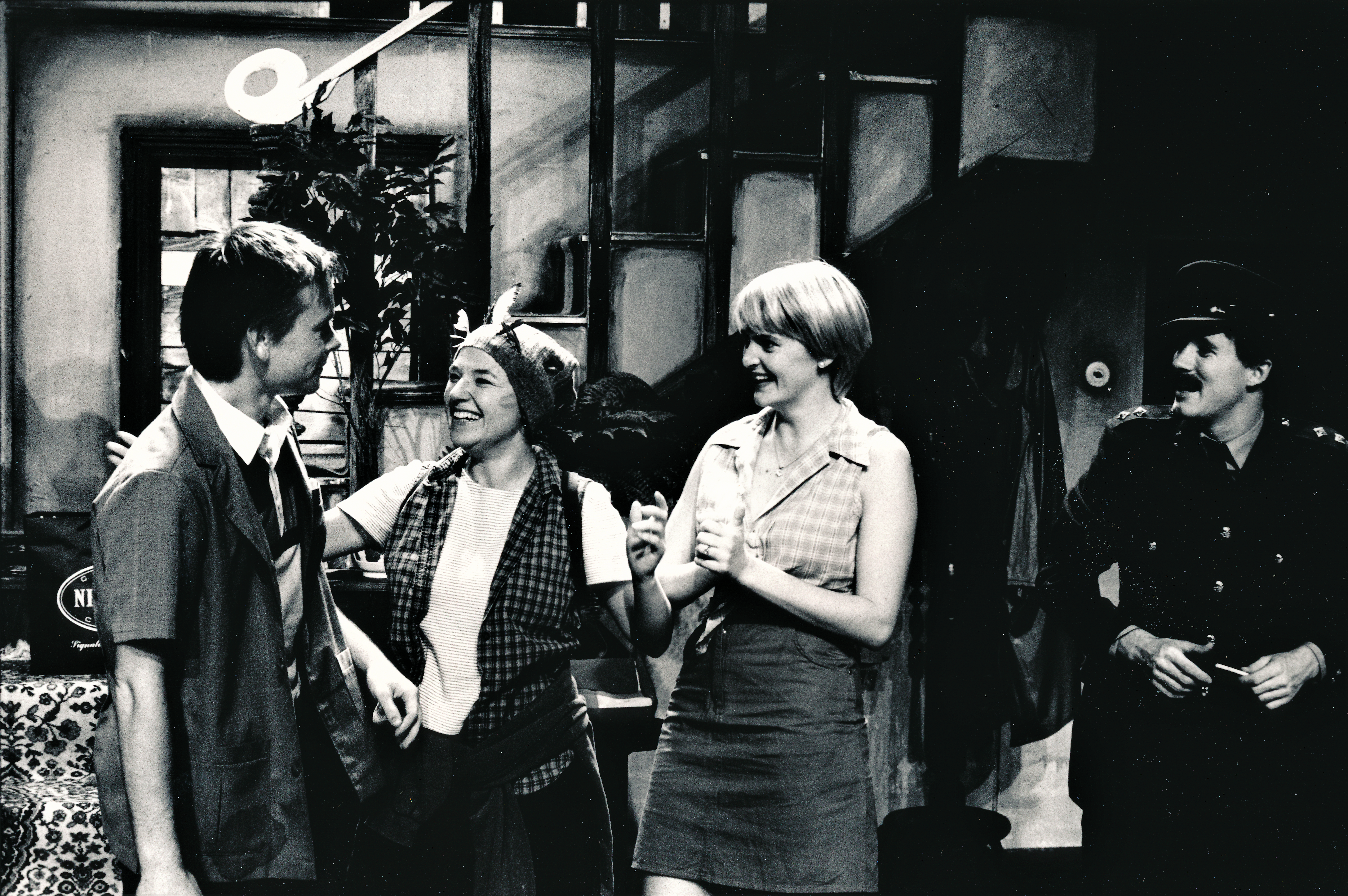 Fotografi fra Statens teaterhøgskoles studentproduksjon Utlendingen (1999) med studenter fra 3.klasse skuespillerlinjen.