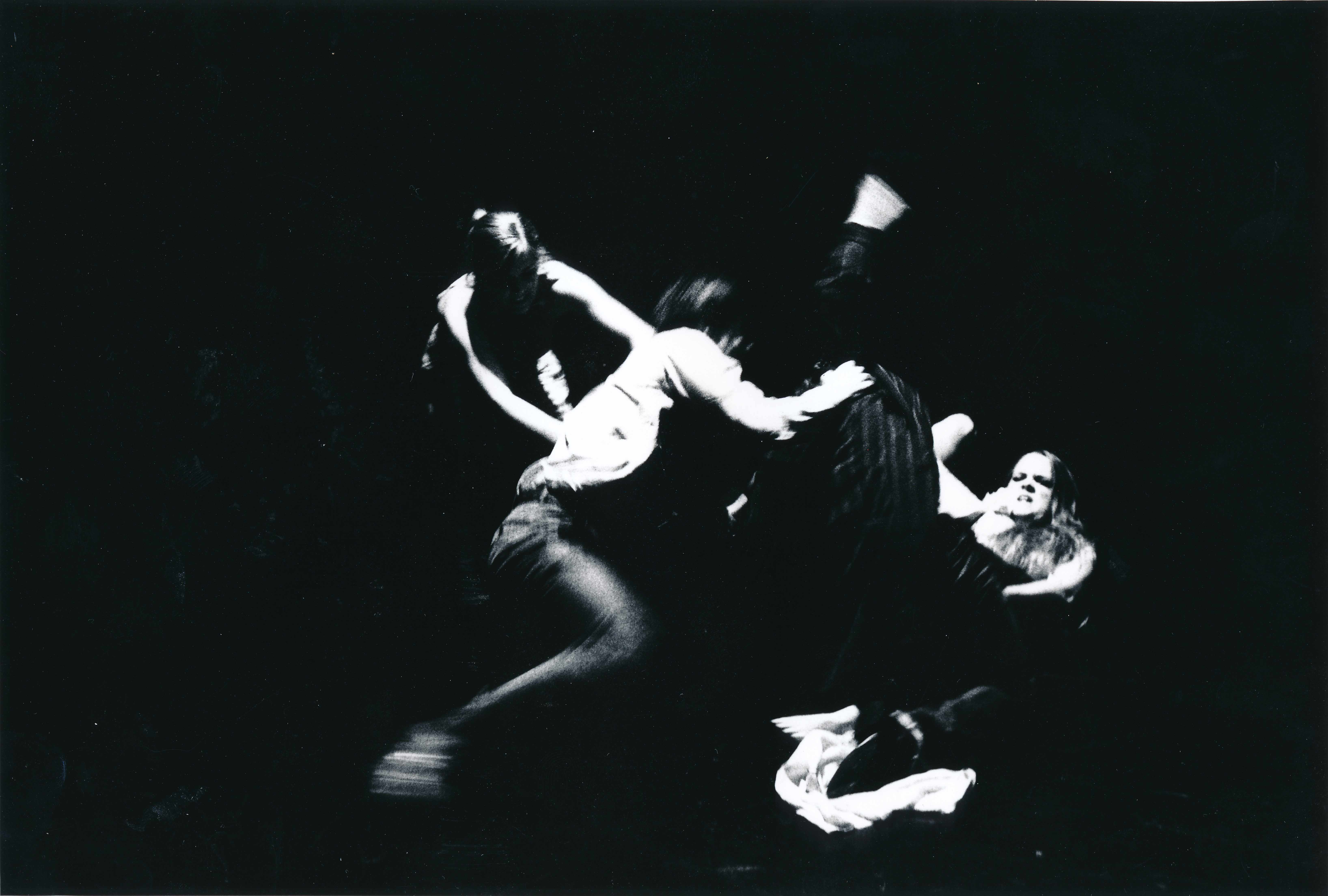 Fotografi fra Statens teaterhøgskoles studentproduksjon Hvem er redd for Virginia Woolf? (2001) med 3.klasse skuespillerlinjen.