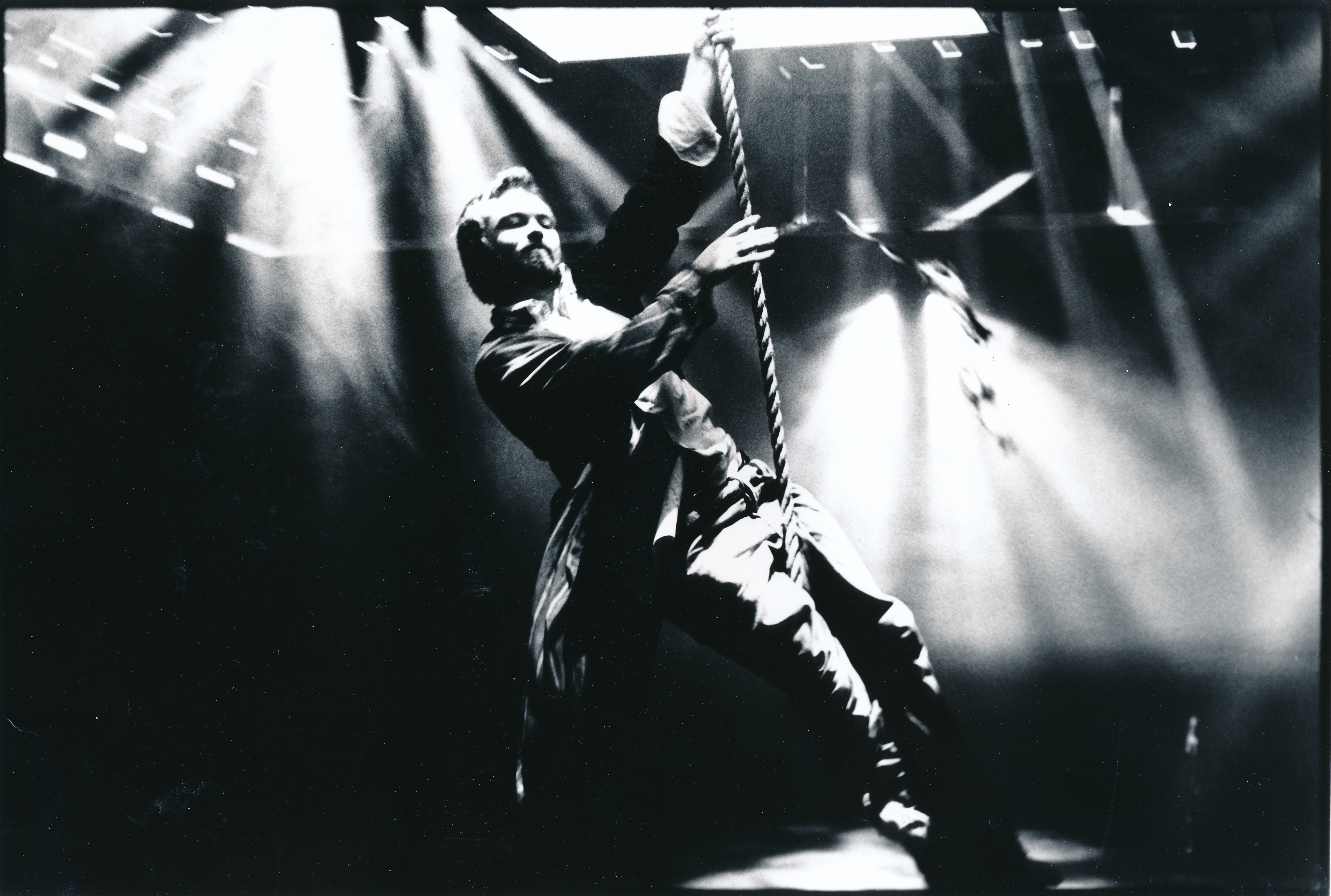 Fotografi fra Statens teaterhøgskoles studentproduksjon Hvem er redd for Virginia Woolf? (2001) med 3.klasse skuespillerlinjen.