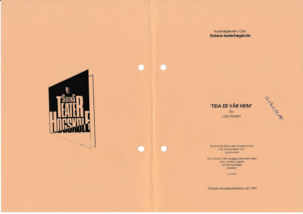 Program til Statens teaterhøgskoles studentproduksjon Tida er vår heim (1997).