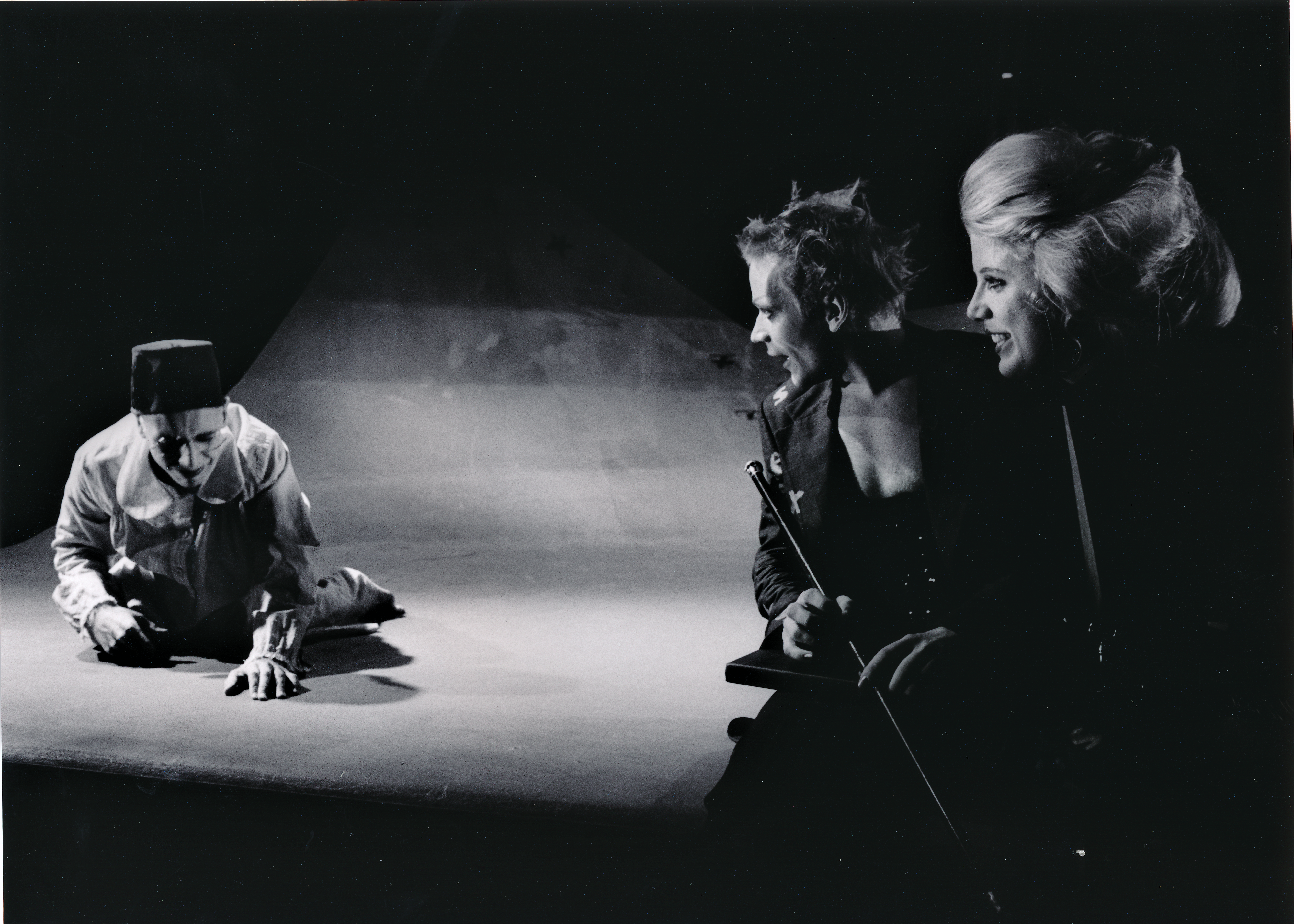 Fotografi fra Statens teaterhøgskoles produksjon Don Perlimplin's kjærlighet til Belisa i hagen (1997) med 3.klasse instruktørlinjen og 3.klasse skuespillerlinjen og gjester.