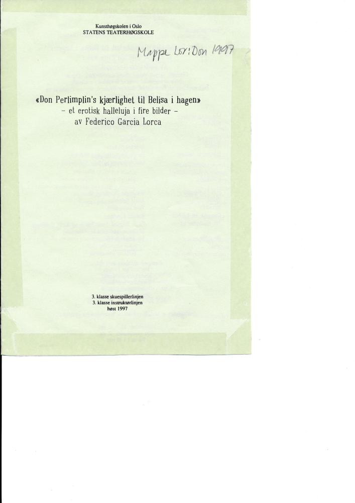 Program til Statens teaterhøgskoles produksjon Don Perlimplin's kjærlighet til Belisa i hagen (1997)