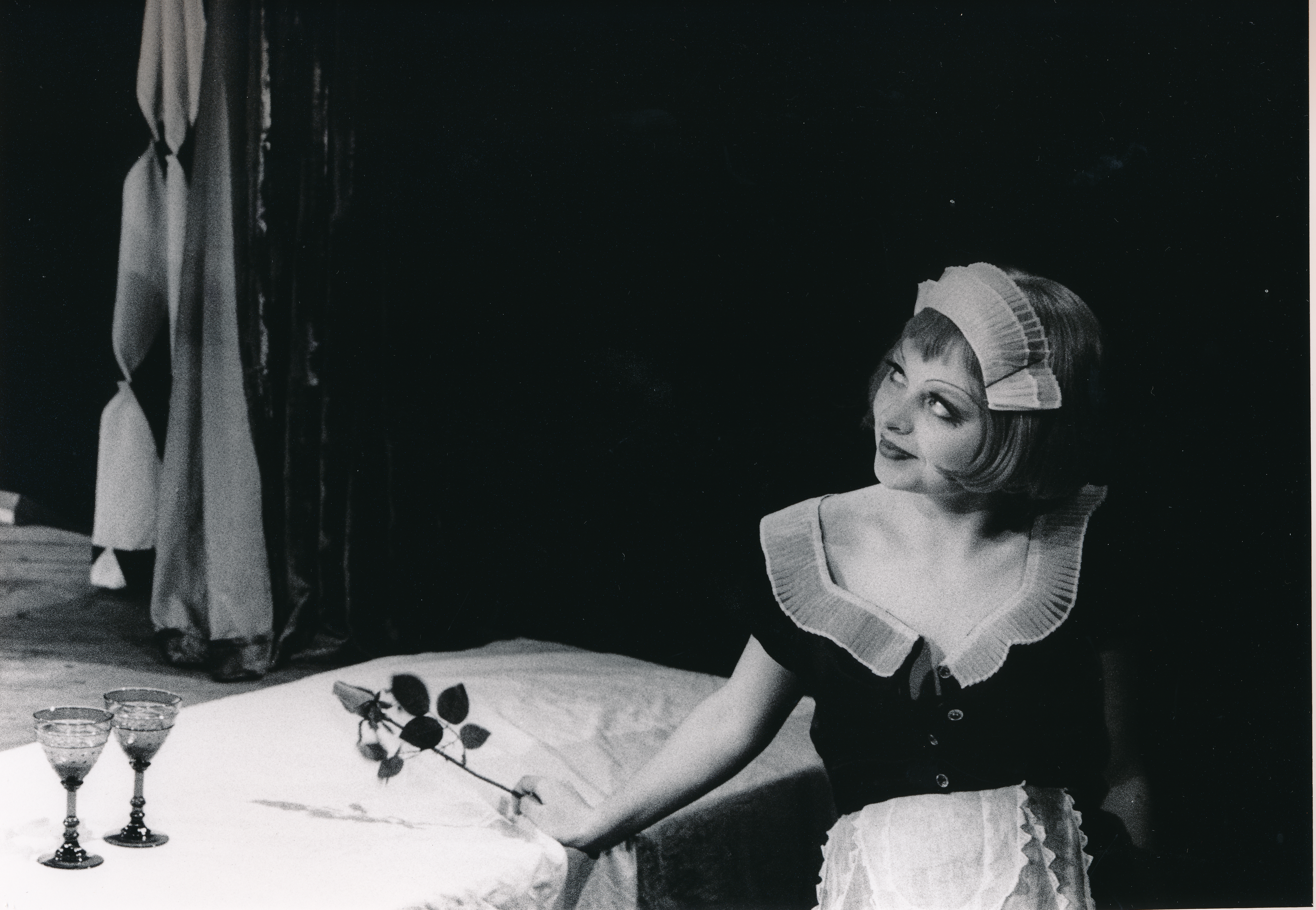 Fotografi fra Statens teaterhøgskoles studentproduksjon Tjener for to herrer (1997).