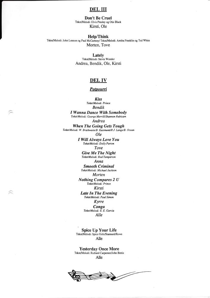 Program til Statens teaterhøgskoles studentproduksjon Remember My Name (1998)