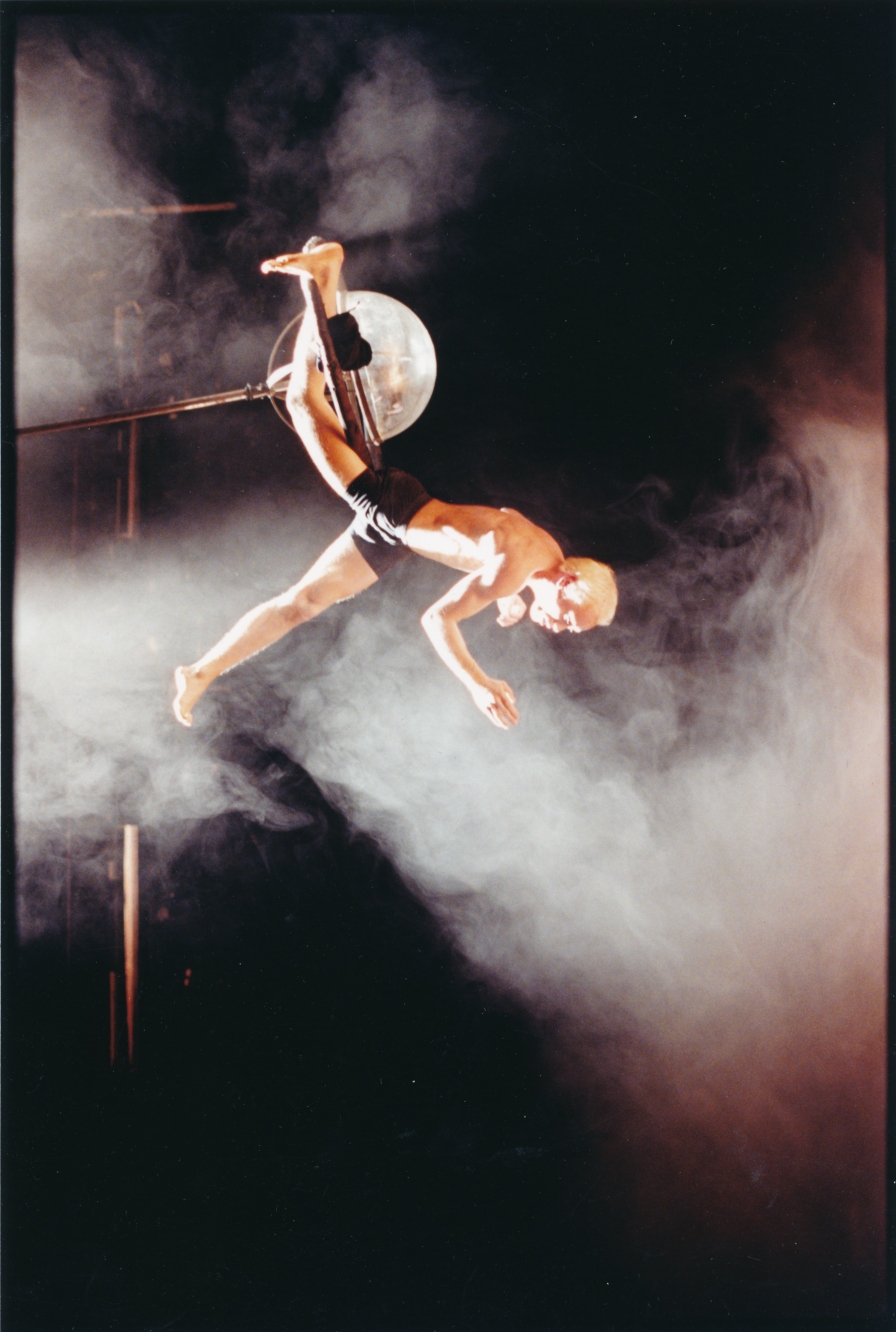 Fotografi fra Statens teaterhøgskoles studentproduksjon Exit the King (2000) med student fra 3.klasse instruktørlinjen og studenter fra 3.klasse skuespillerlinjen og gjester.