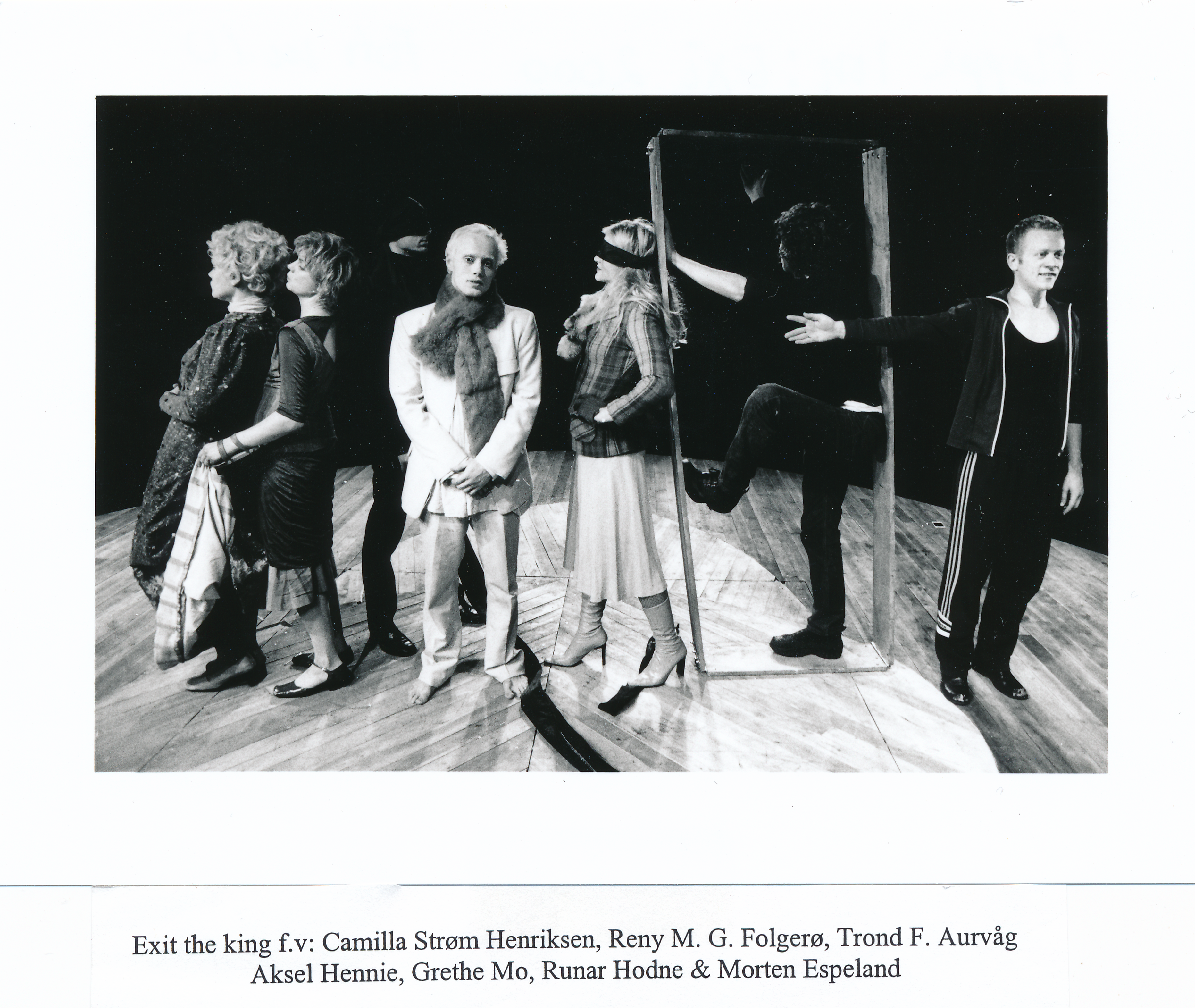 Fotografi fra Statens teaterhøgskoles studentproduksjon Exit the King (2000) med student fra 3.klasse instruktørlinjen og studenter fra 3.klasse skuespillerlinjen og gjester.