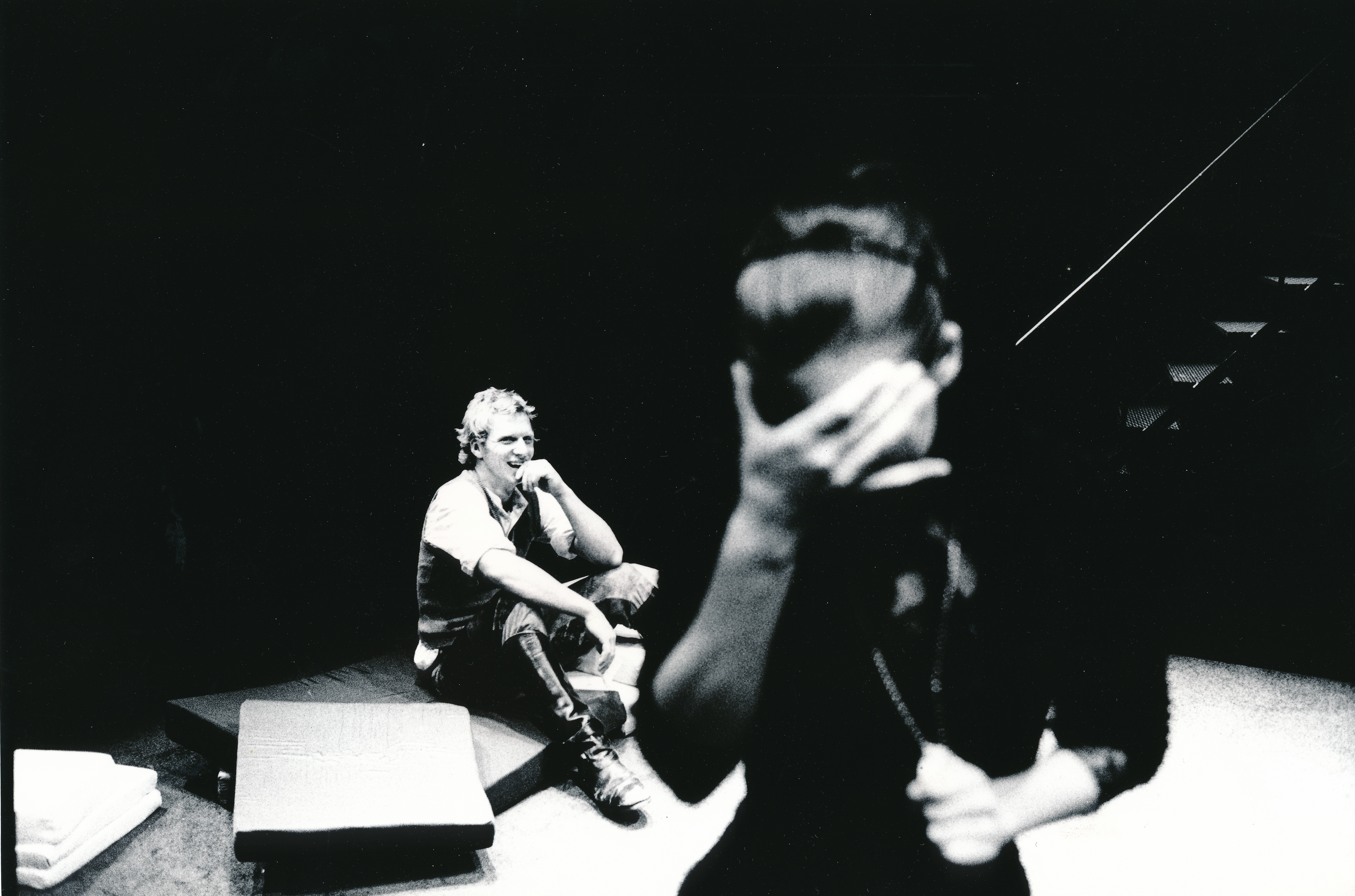 Fotografi fra Statens teaterhøgskoles produksjon Bjørnen (2002) med studenter fra 3.klasse skuespillerlinjen og student i 2.klasse instruktørlinjen.