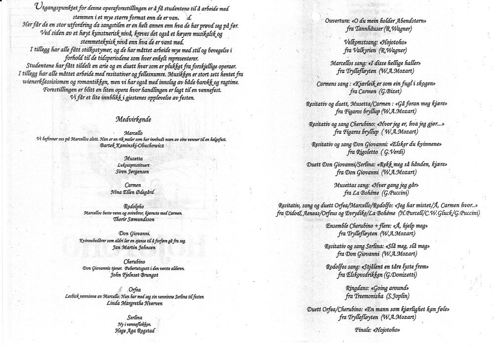 Program til Statens teaterhøgskoles studentproduksjon HOJOTOHO (2002) med 3.klasse skuespillerlinjen.