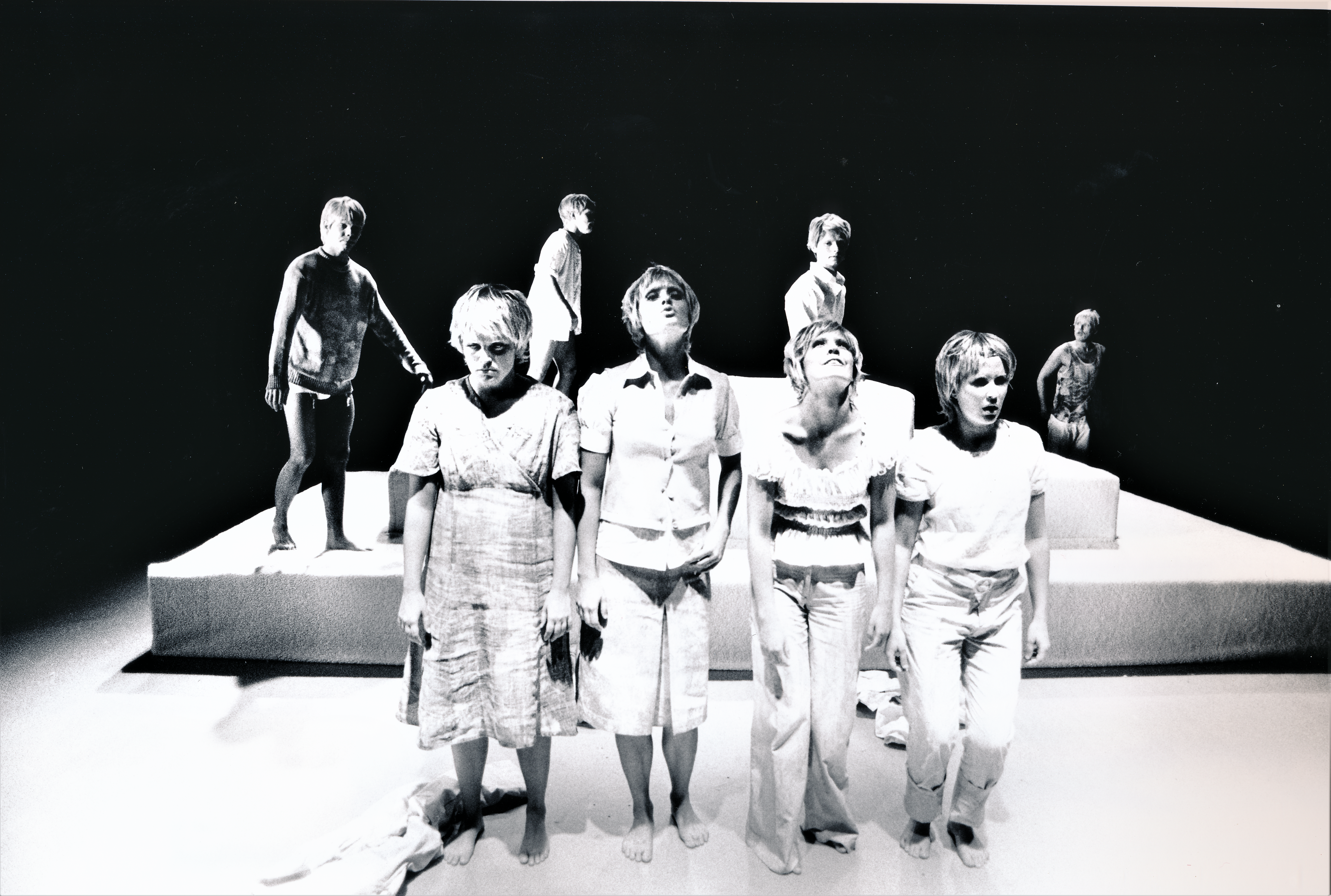 Fotografi fra Statens teaterhøgskoles studentvisning Osmose (2001) med 3.klasse skuespillerlinjen.