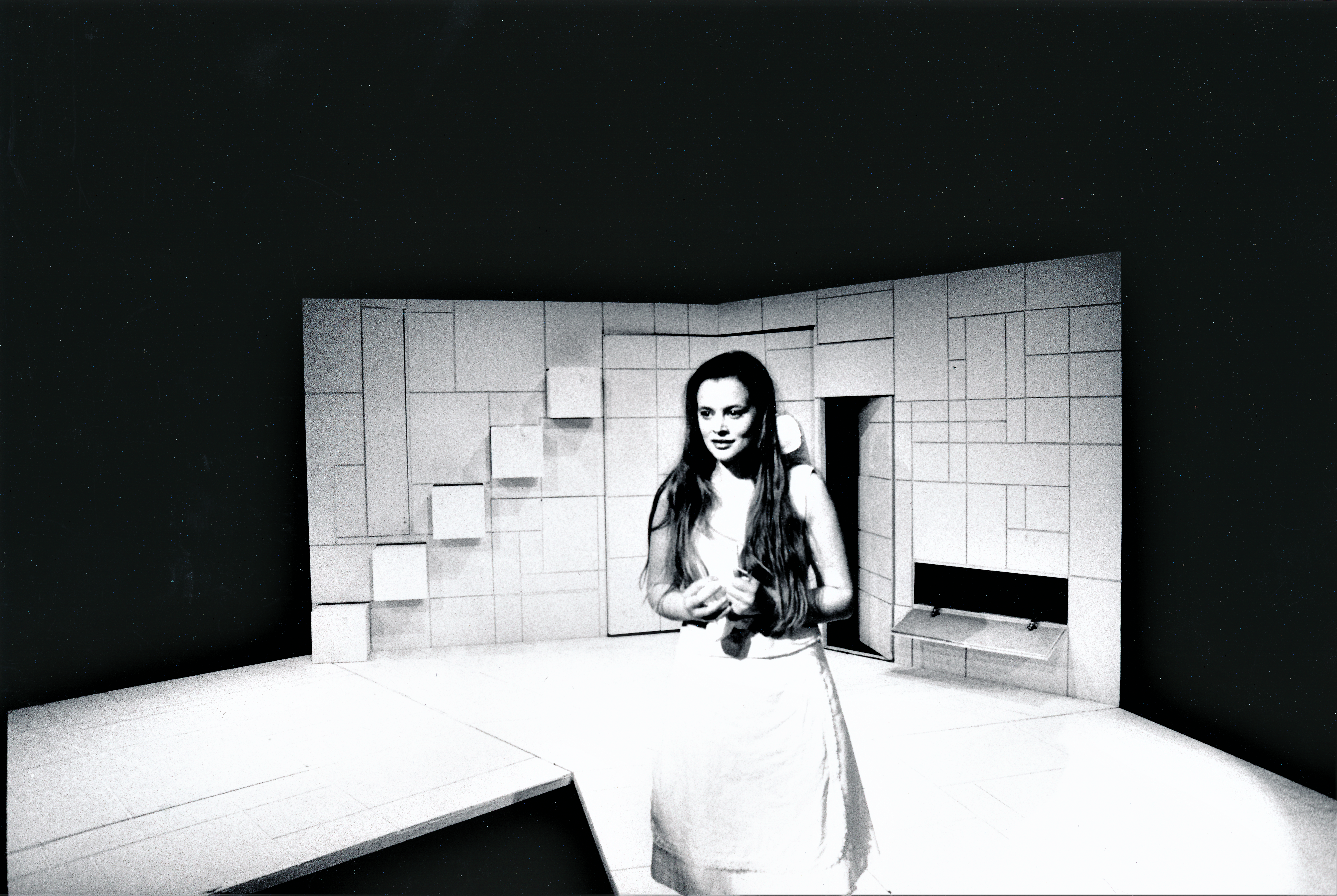 Fotografi fra Statens teaterhøgskoles studentproduksjon Kjærleiken og tilfellets spel (2004) med student fra 3.klasse instruktørlinjen, studenter fra 3.klasse skuespillerlinjen og gjest