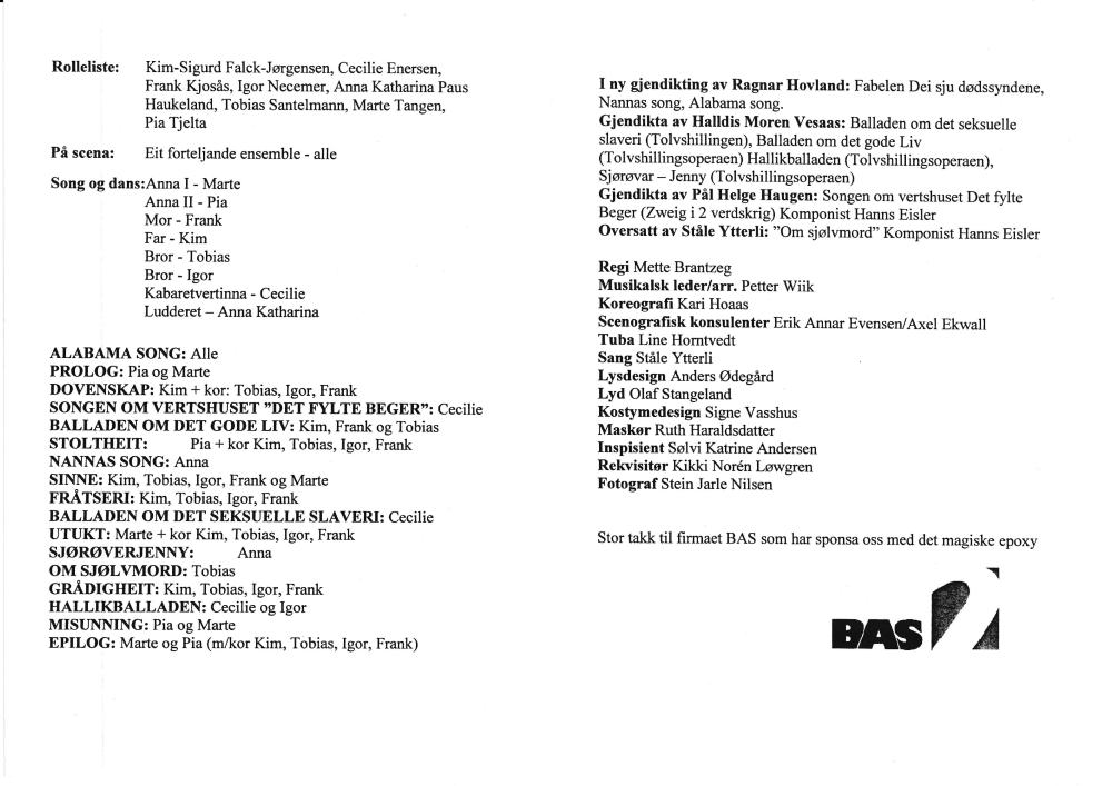 Program til Fakultet for scenekunst, 3BA skuespillere Dei sju dødssyndene - utvida versjon (2006)