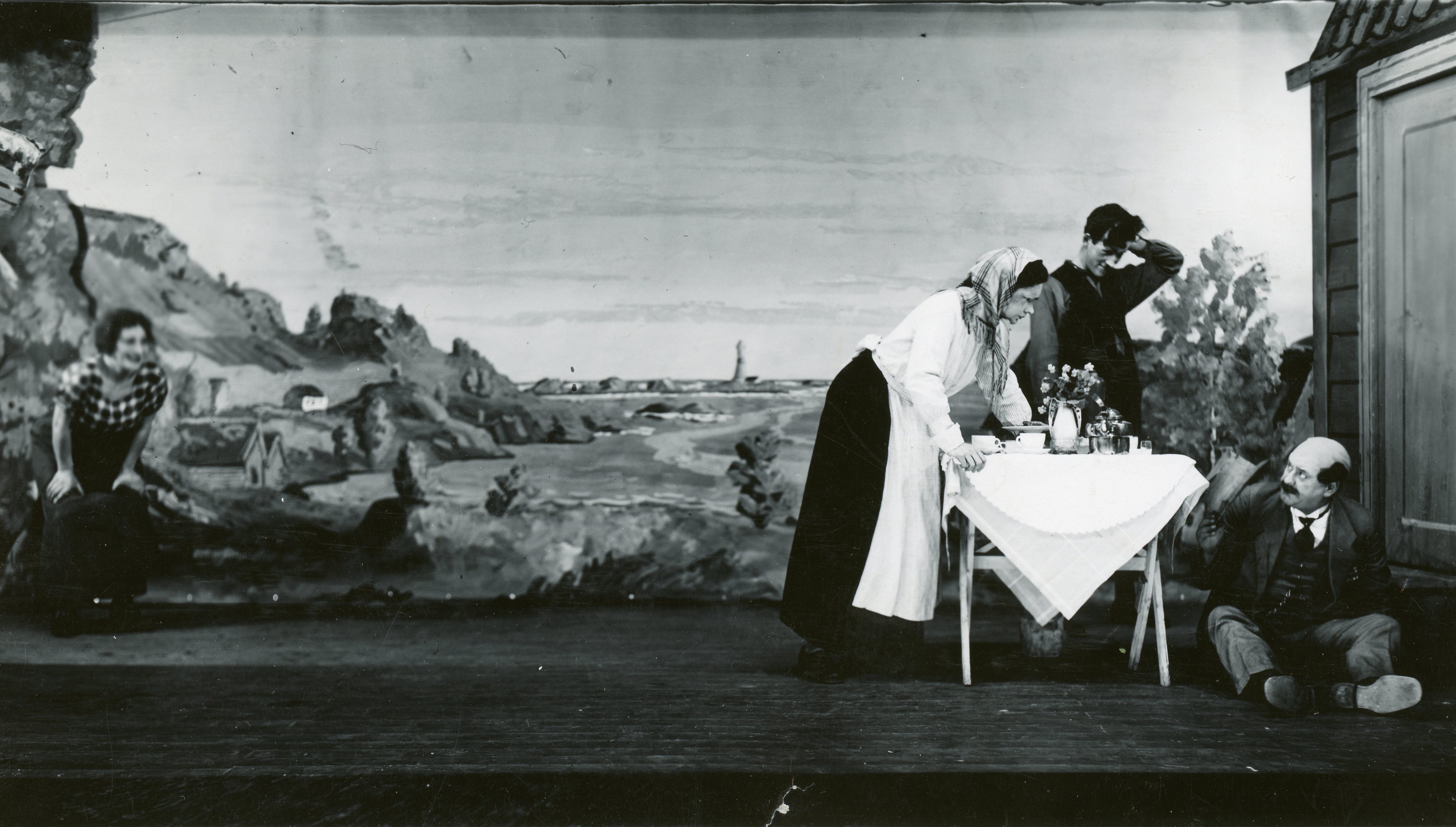 Fotografi fra Komediateatrets produksjon Bryllupet på Soløy, 1936.
