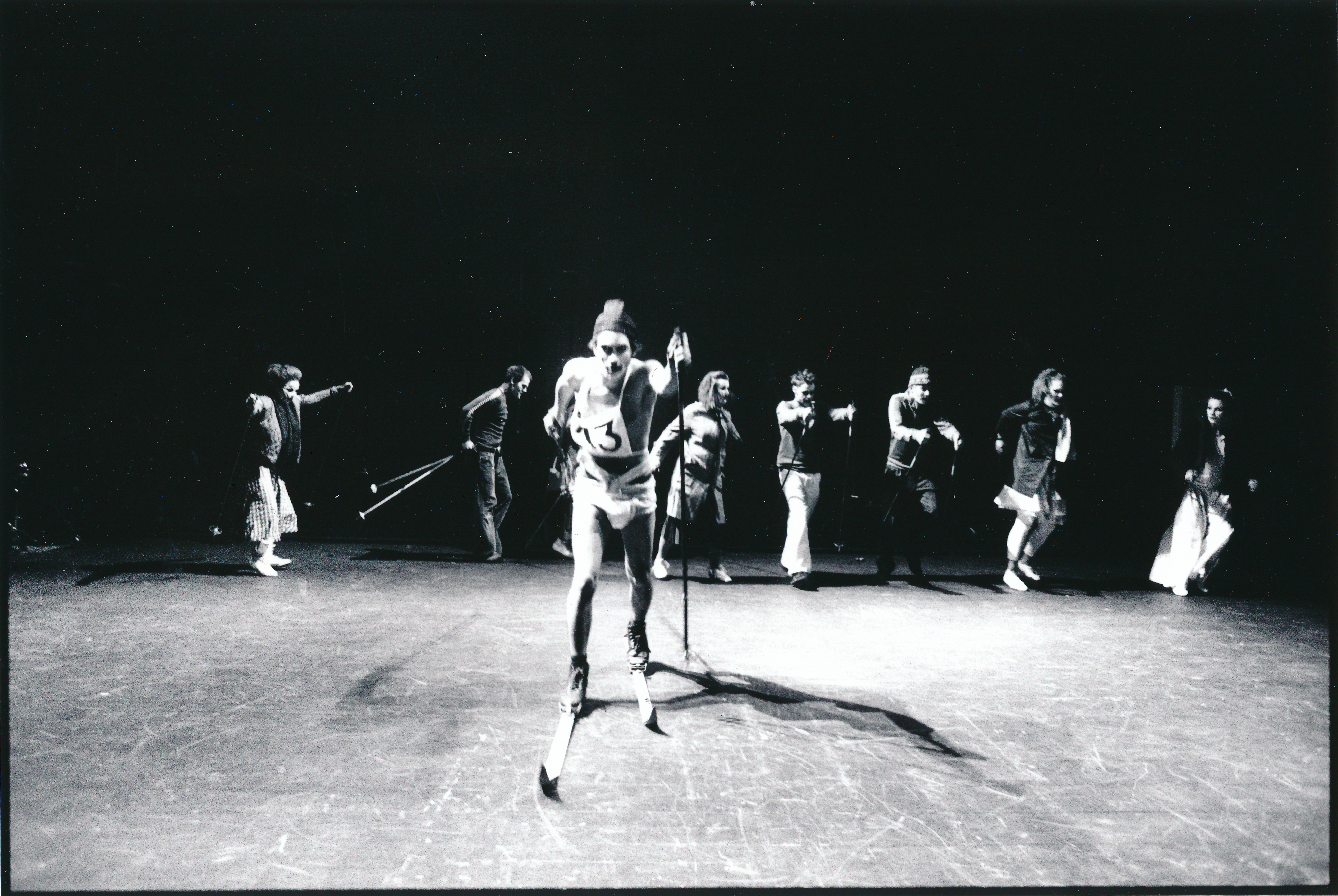 Fotografi fra Fakultet for scenekunst, Teaterhøgskolens sang- og dansproduksjon Heng meg hvor du vil (2005) med 3.år bachelor skuespillere.