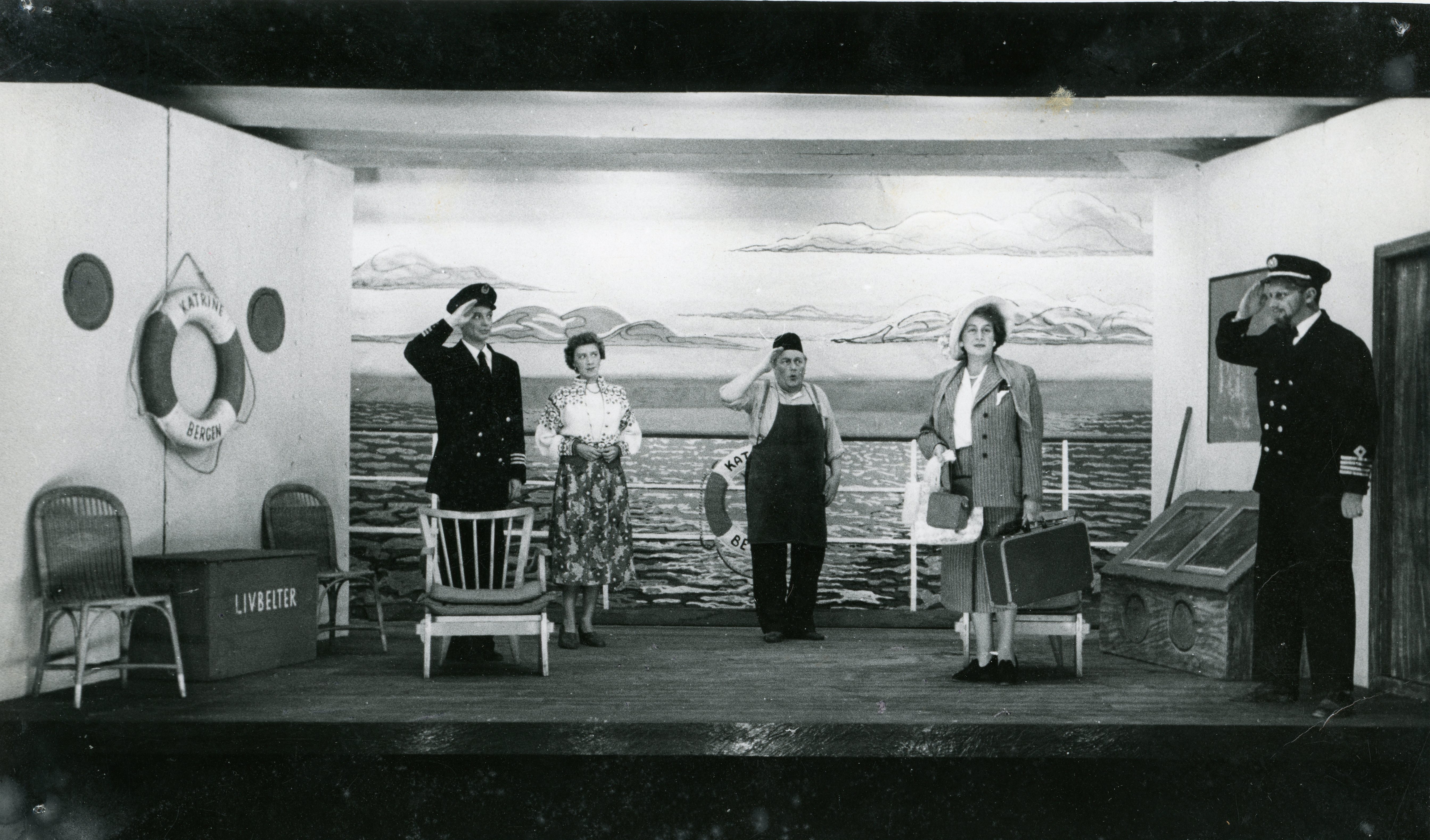 Fotografi fra Komediateatrets produksjon Bøljer til sjøs, 1955.