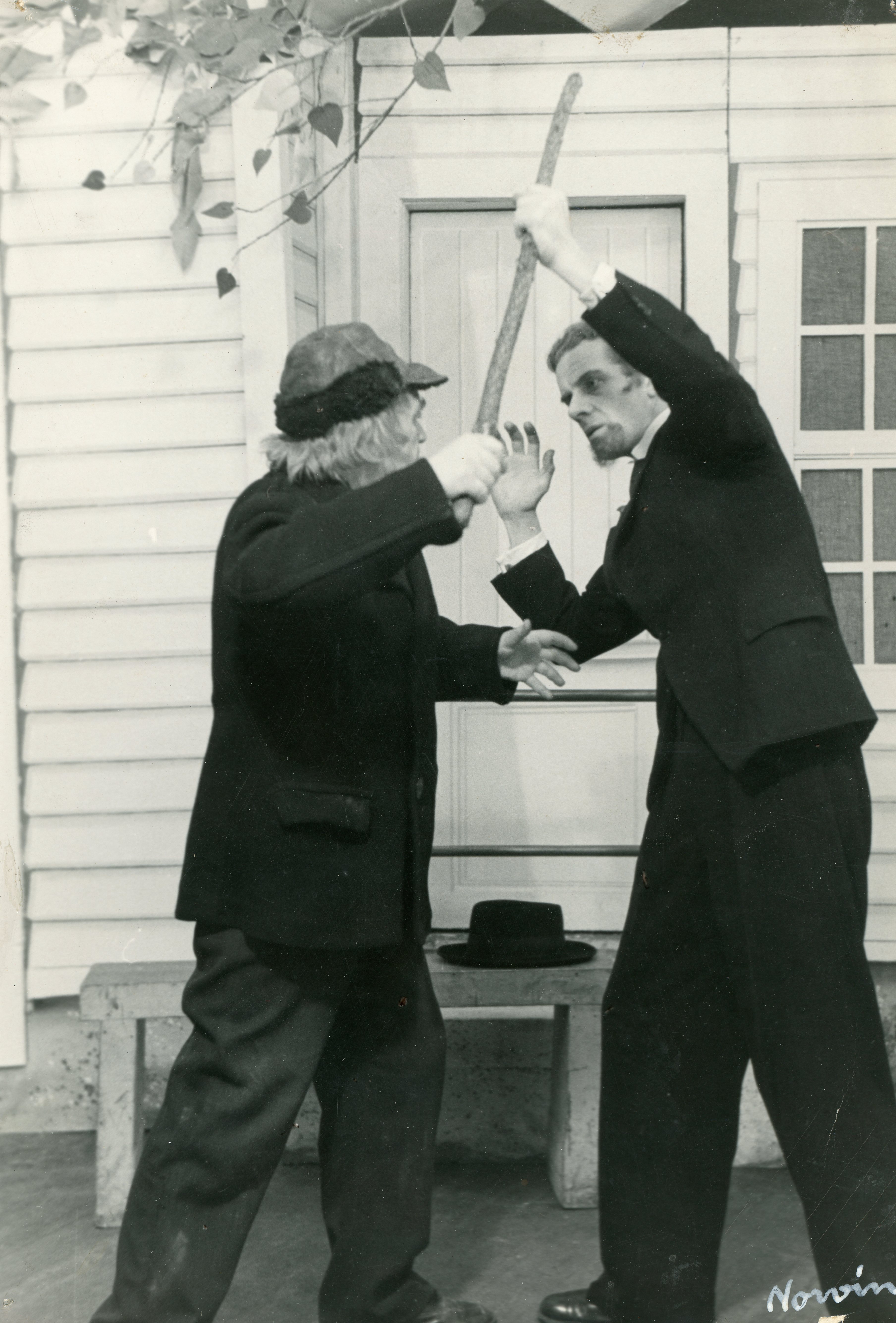 Fotografi fra Komediateatrets produksjon Dåpsattesten, 1947.