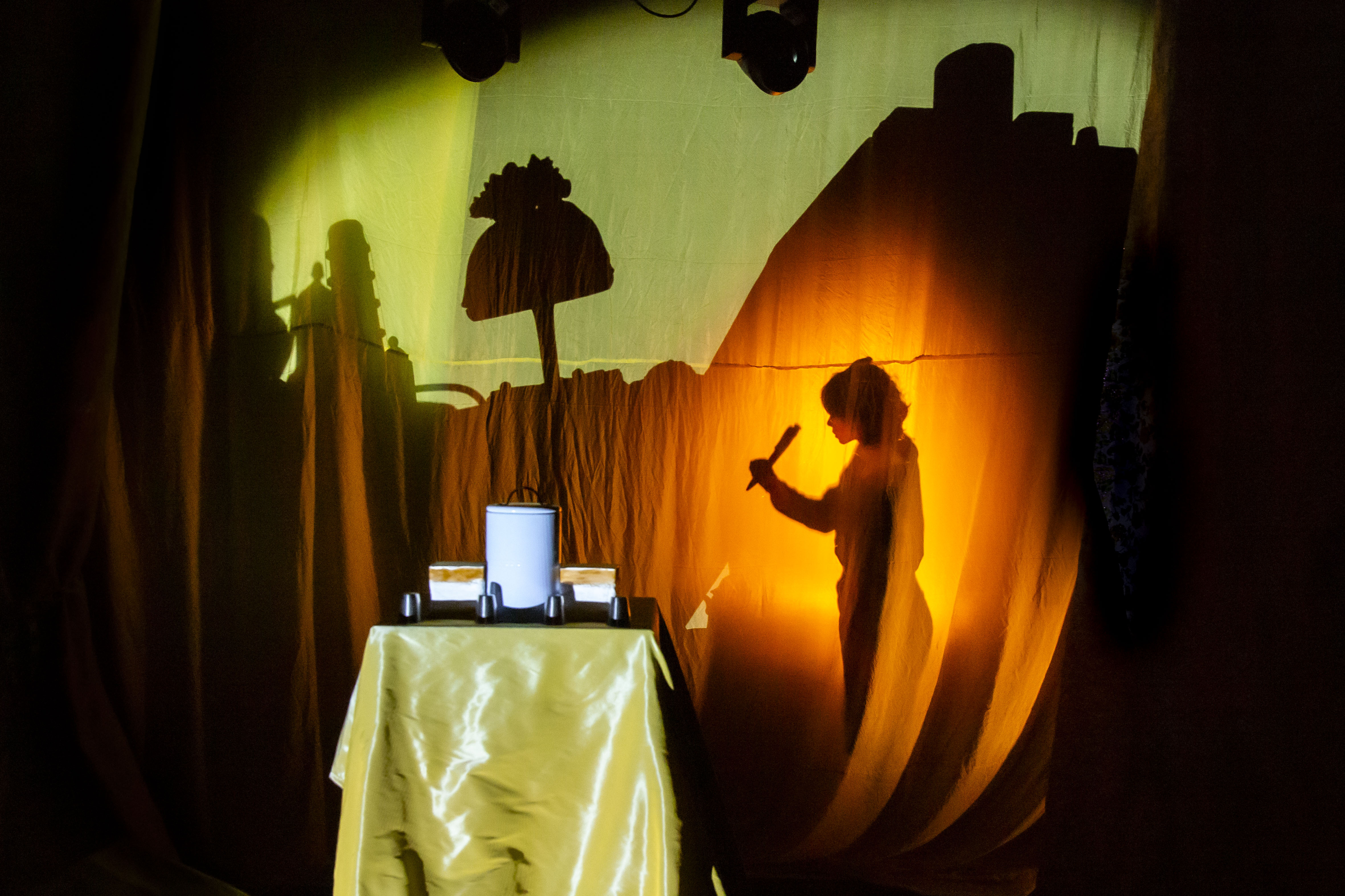 Fotografi fra Fabulariums produksjon Fyrsten – et teselskap om demokratiets forfall (2021).
