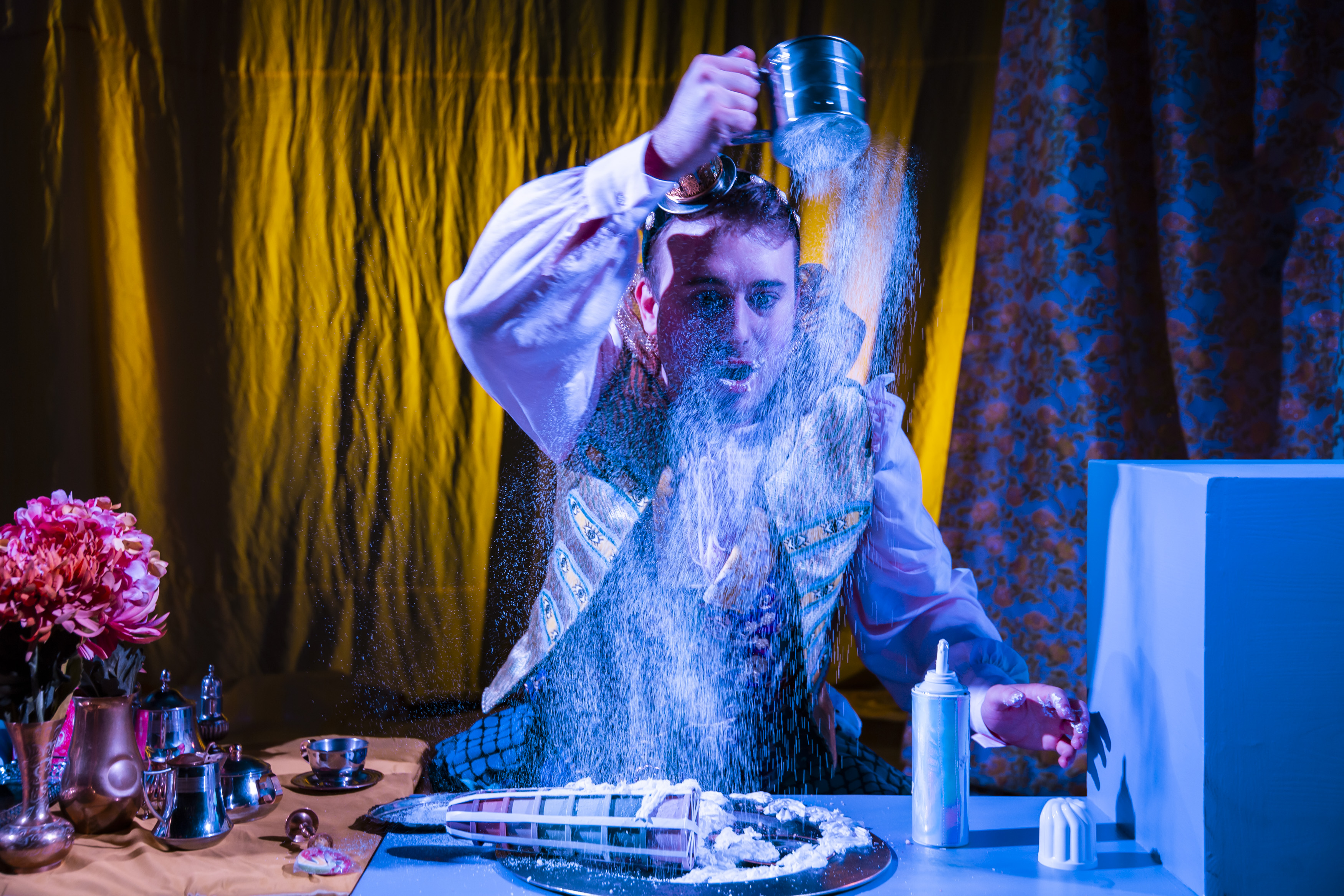 Fotografi fra Fabulariums produksjon Fyrsten – et teselskap om demokratiets forfall (2021).