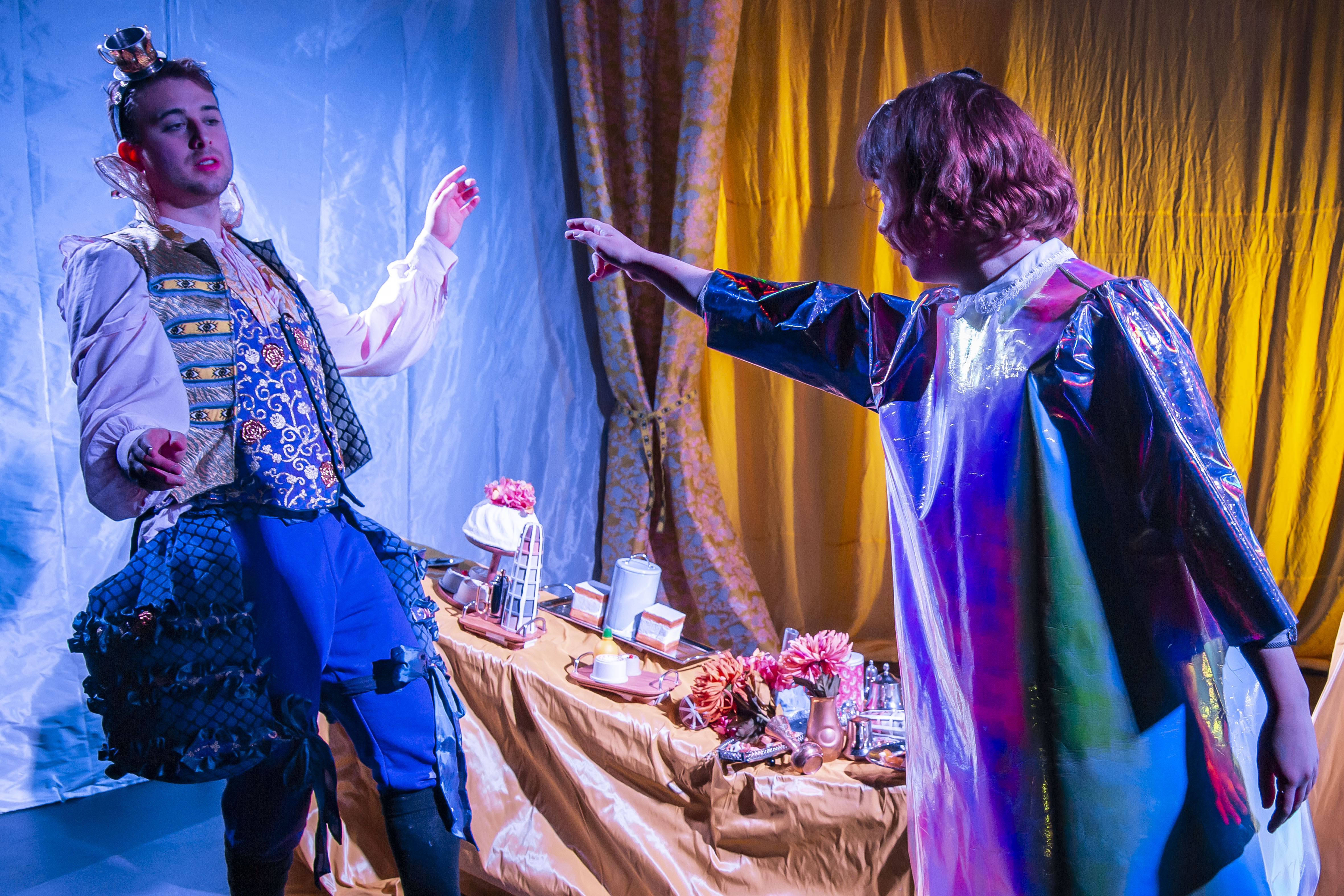 Fotografi fra Fabulariums produksjon Fyrsten – et teselskap om demokratiets forfall (2021)