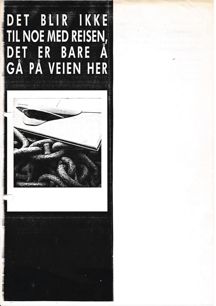 Plakat til Statens teaterhøgskoles studentproduksjon Det blir ikke til noe med reisen, det er bare å gå på veien her (1987).