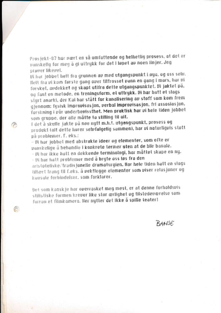 Programtekst til Det blir ikke til noe med reisen, det er bare å gå på veien her, Bjørn "Bamse"Willberg (1987)