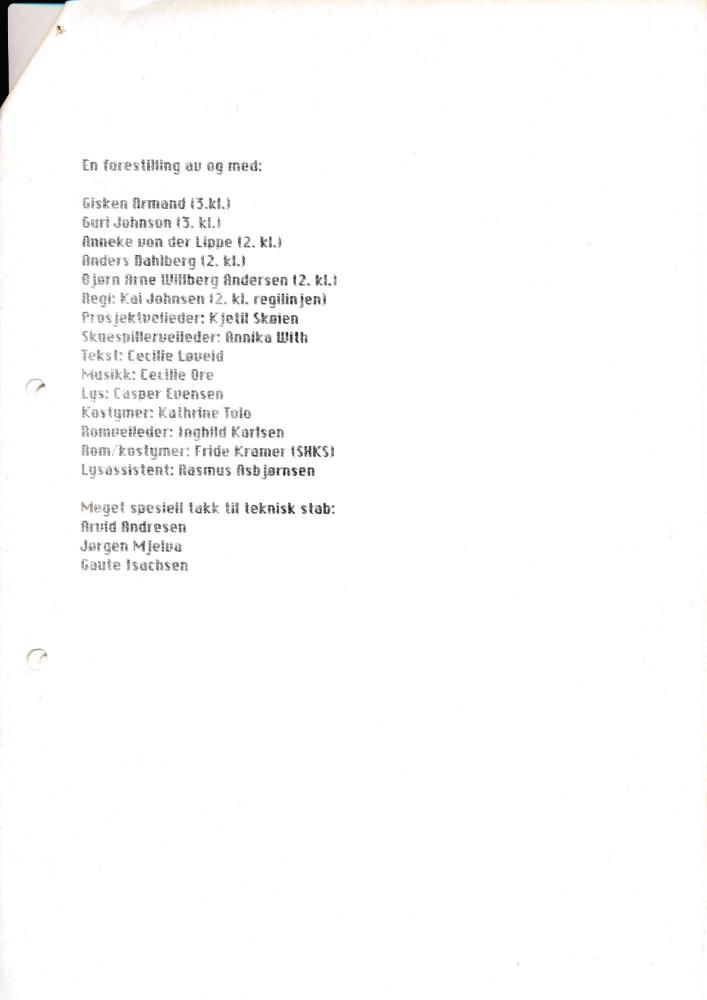Rolleliste for Statens teaterhøgskoles visning Det blir ikke til noe med reisen, det blir bare å gå på veien her (1987)