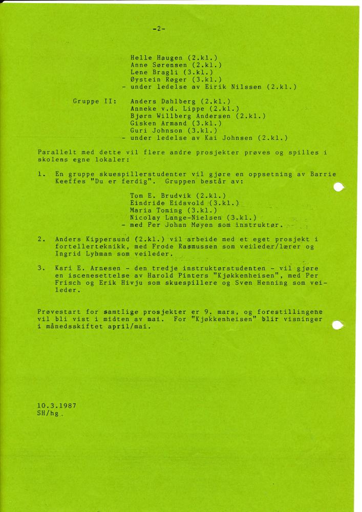 | Emneord | 2. klasse, 3. klasse, Instruktørlinjen, Skuespillerlinjen, Prosjektbeskrivelse, Teater |