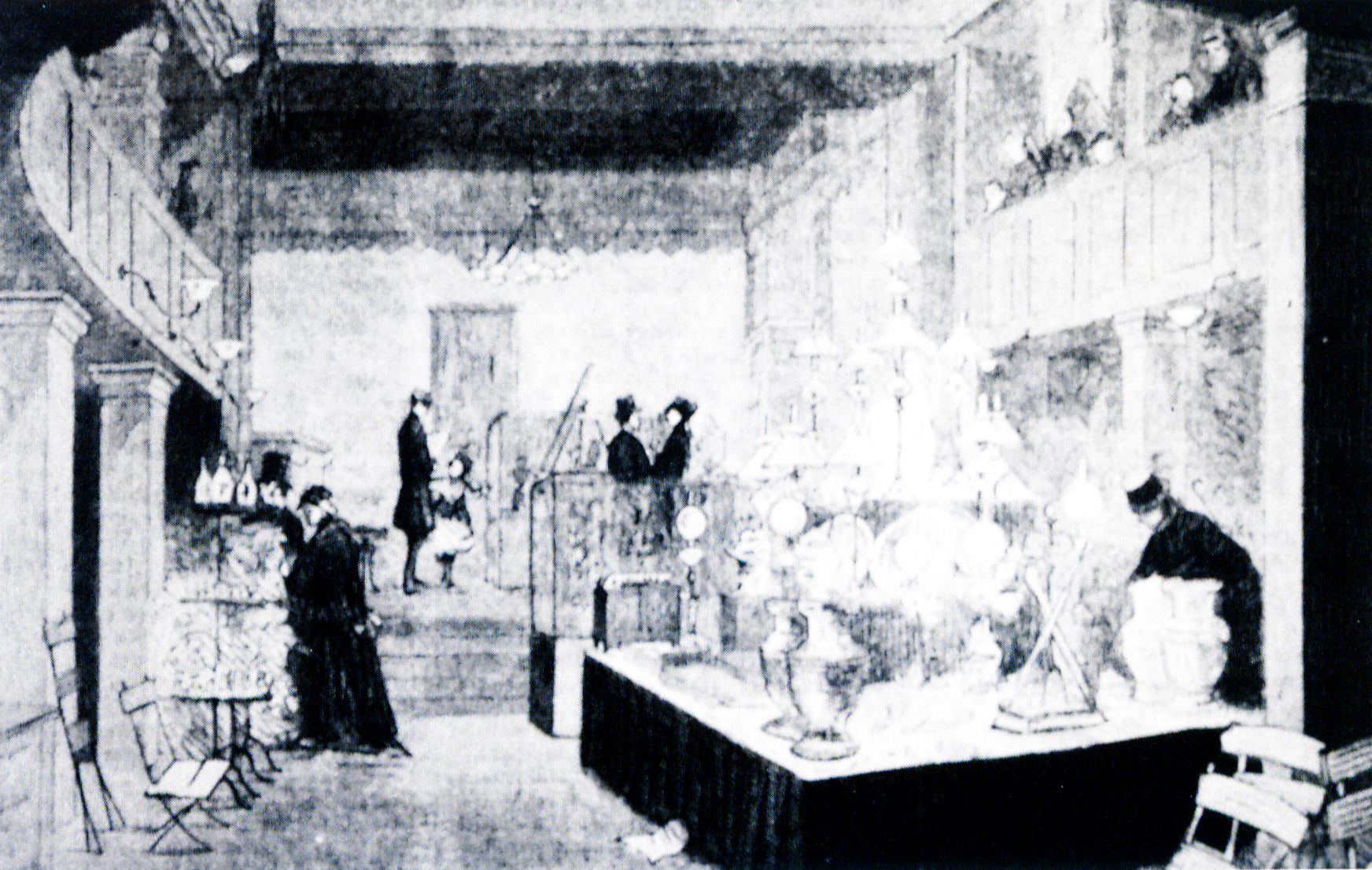 Xylografi av Søylesalen i Dramatiken (nå: skuespillerfoajeen i Centralteatret).