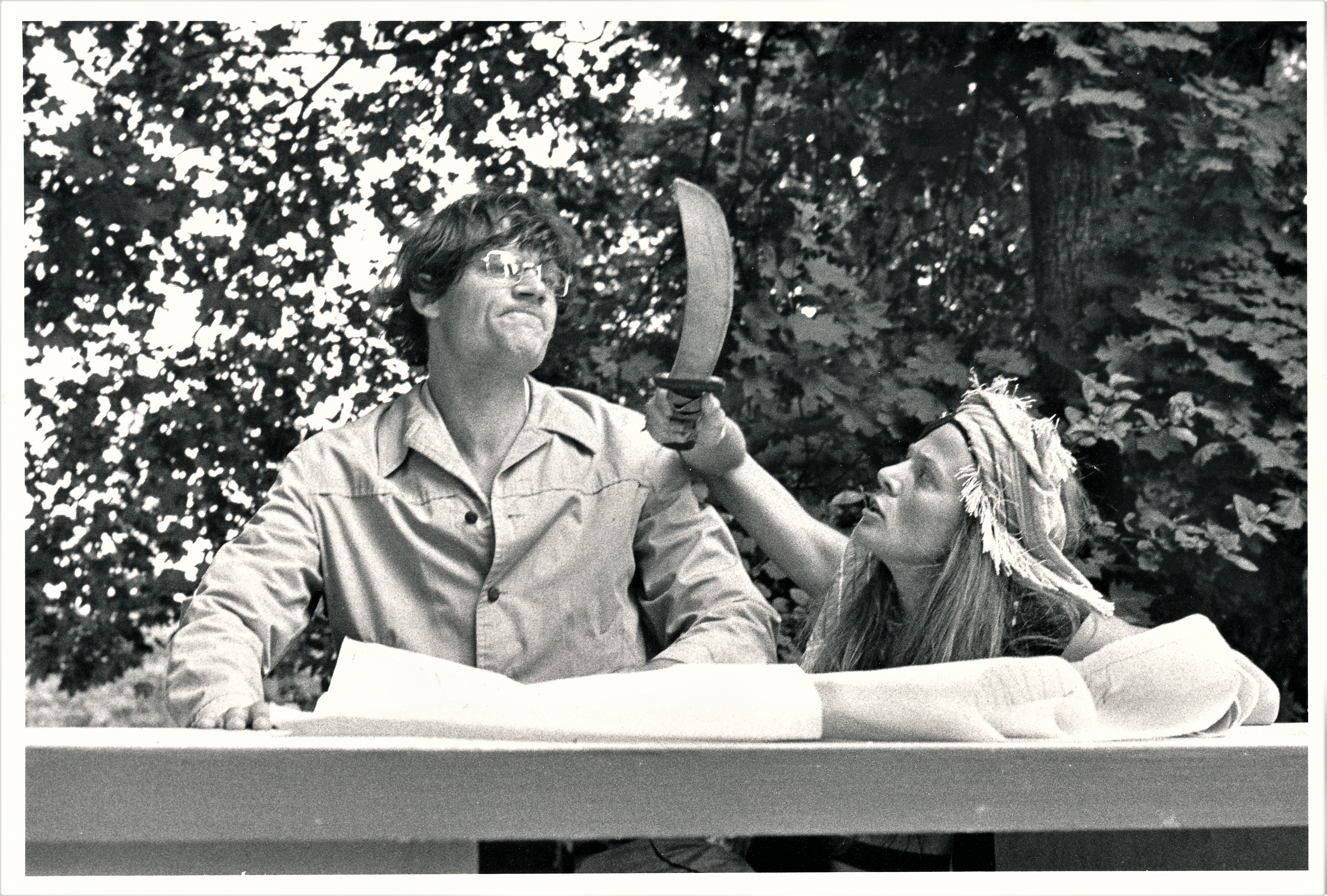 Fotografi fra Sjørøverne på Diamantøya (1980) Sommerteateret 1980 med 2.klasse skuespillerlinjen, Statens teaterskole.