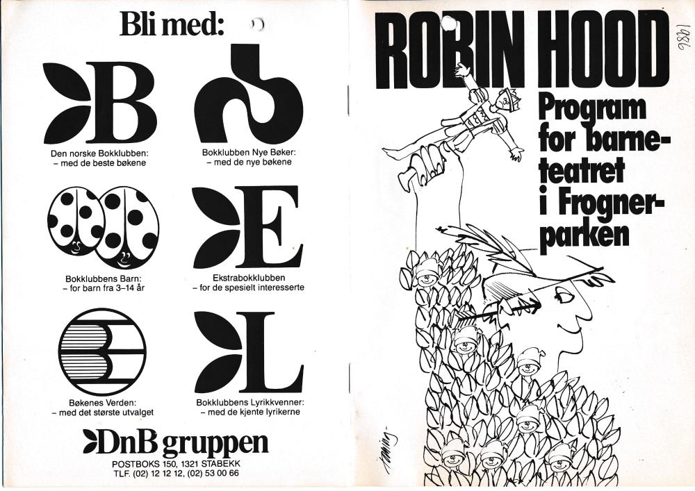Program til Statens teaterhøgskole 2.klasse sommerteater Robin Hood (1986) i Frognerparken.
