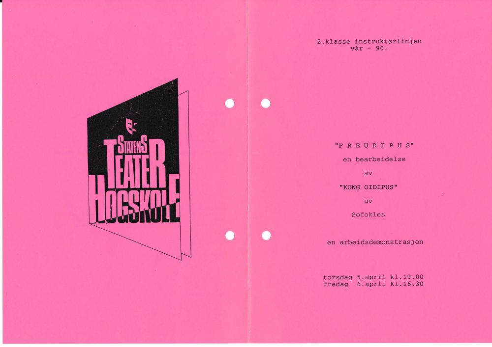 Programforside til Statens teaterhøgskoles arbeidsdemonstrasjon Freudipus (1990)