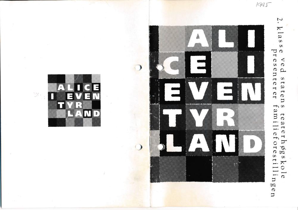 Program til Alice i Eventyrland, sommerteater (1994) med 2.klasse skuepillerlinjen ved Statens teaterhøgskole