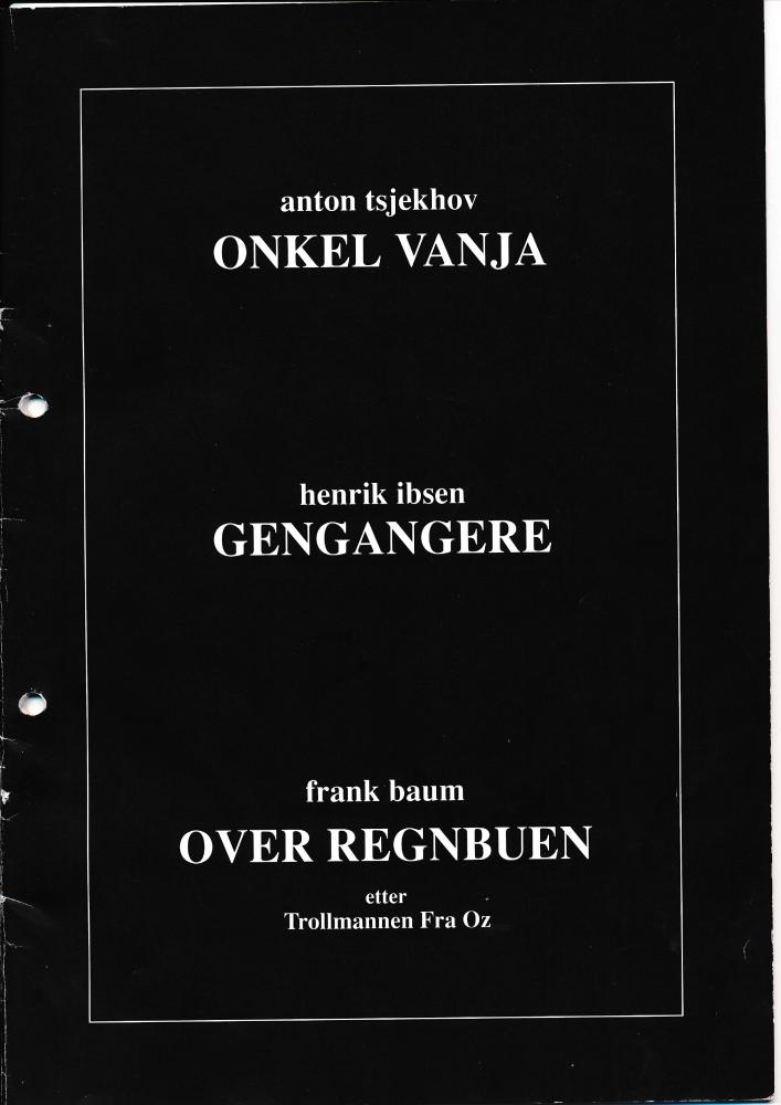 Program til Statens teaterhøgskoles studentproduksjon Over regnbuen (1994) med Jon Tombre 3.klasse instruktørlinjen, 3.klasse skuespillerstudenter og gjester.